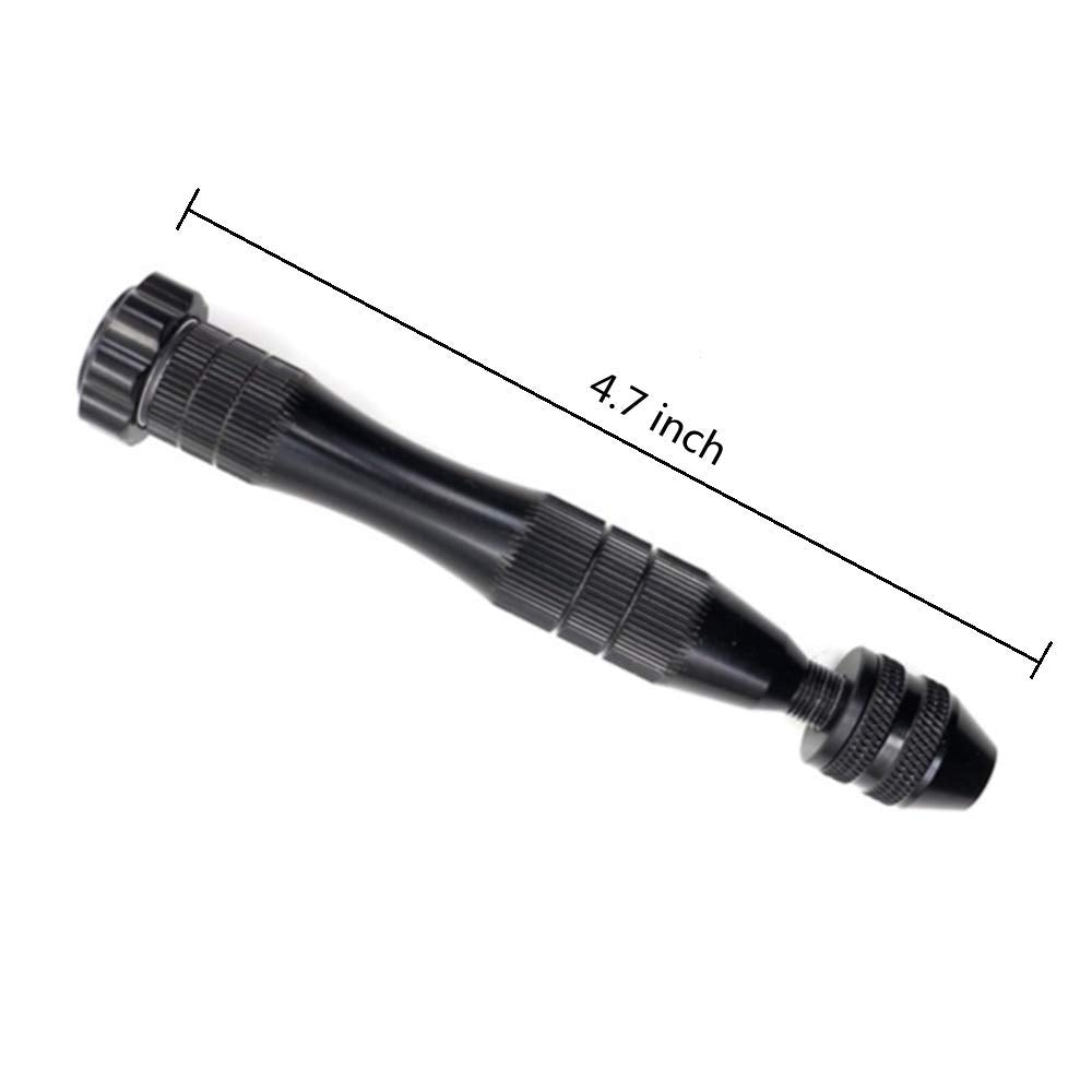 - SIZE: This hand drill is 4.7 inches long, suitable for ordinary hand size, easy to use. The hand pin vise features 3 jaw chuck, clamp the drills bits in 0.8-3 mm, keeping them upright and clamping them really tight.