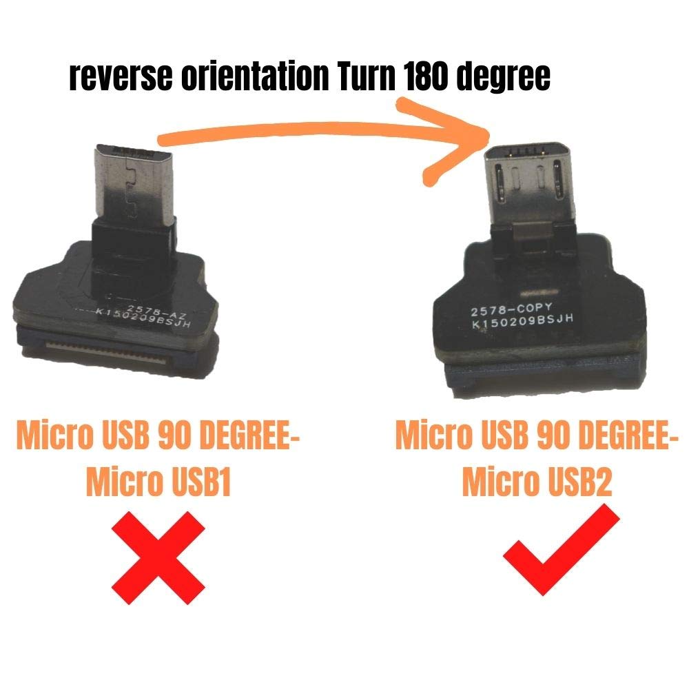 - Please check the orientation of Micro USB and Standard USB plug.One Micro USB male plug 90 degree and One standard USB A male plug angled UP or Down .both ends are removable .USB 2.0 Version.