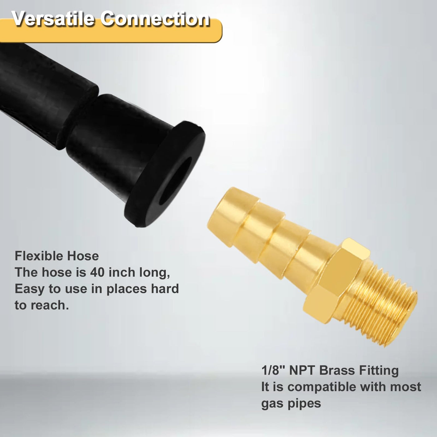 - Versatile Connection: The included 1/8" NPT fitting with barbed connection offers a secure and adaptable attachment to various gas systems, ensuring a reliable and leak-free connection.