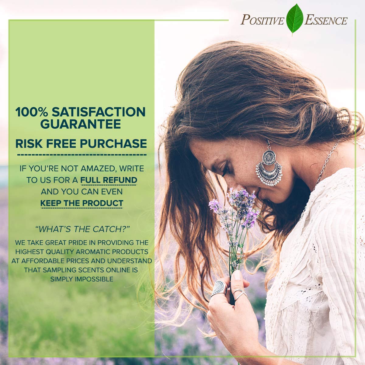 Read more Sensual Massage Oil Gift Set Massage oil variety pack for putting your mind and body in a blissful state. Treat your partner with a romantic gift that you can both enjoy. Five unique scents, handcrafted using pure and high quality plant-based products including: jojoba, sweet almond oils, pure essential oils and Vitamin E. Read more All Natural These natural massage oils contains only plant-based ingredients including pure essential oil. No parabensNo phthalatesNo artificial fragrance or perfumesNo animal testing or animal crueltyNo harsh chemicals Trusted Quality The remarkable uses of essential oils can only be maximized when using pure essential oils. Since quality regulations are virtually non-existent, knowing where your oils come from and how they are created is crucial to ensuring effectiveness. Positive Essence products are small-batch hand mixed by people who are passionate about providing customers with the highest quality aromatherapy products on the market. All our ingredients are derived from safe, renewable resources. Read more Read more Lavender Essential Oil Roller Peppermint Essential Oil Roller Lemongrass Essential Oil Roller Neroli Essential Oil Roller Tea Tree Essential Oil Roller Pure Essential Oil Roller ✓ ✓ ✓ ✓ ✓ Easy Application ✓ ✓ ✓ ✓ ✓ Travel Size ✓ ✓ ✓ ✓ ✓ All Natural ✓ ✓ ✓ ✓ ✓ Hand Mixed/Packaged ✓ ✓ ✓ ✓ ✓