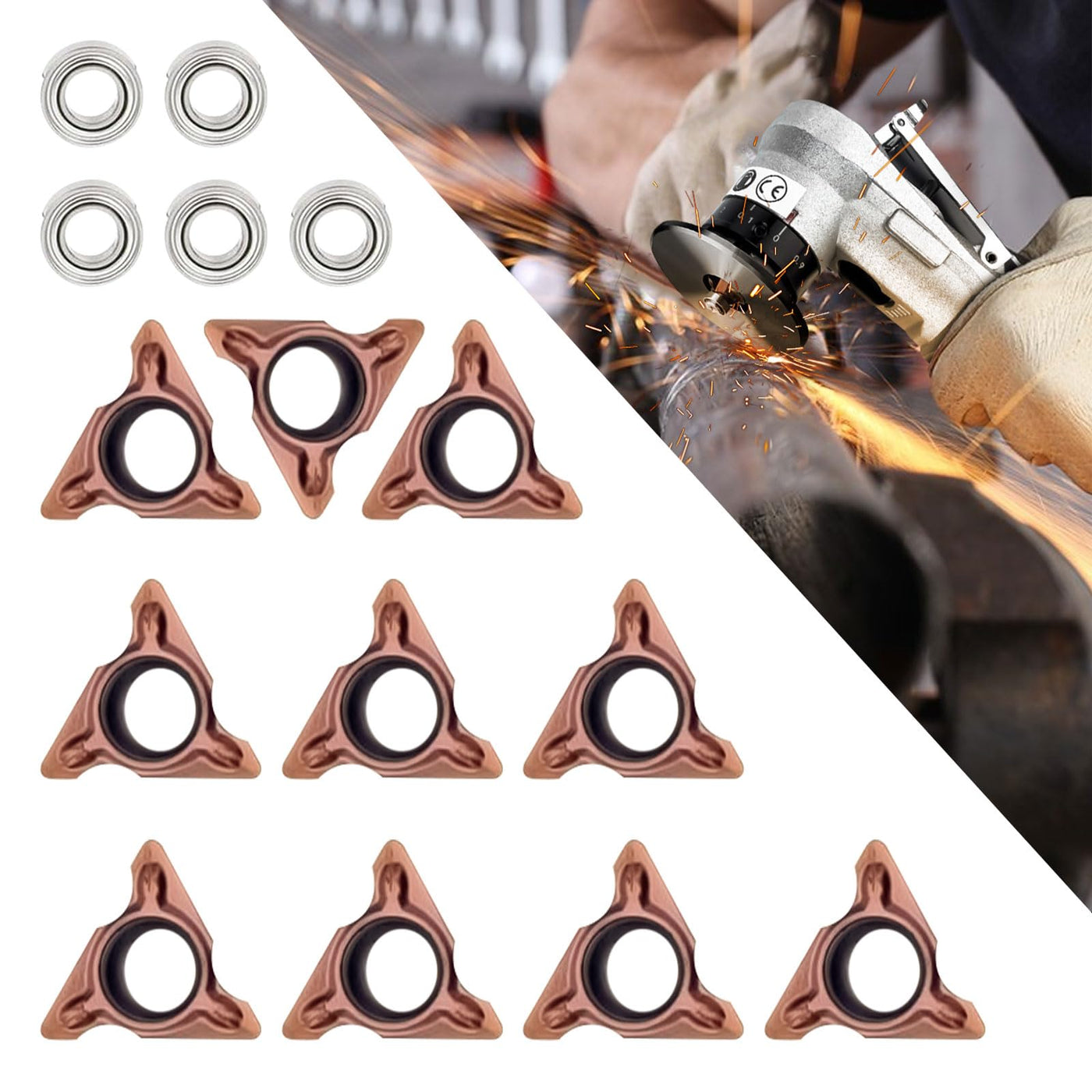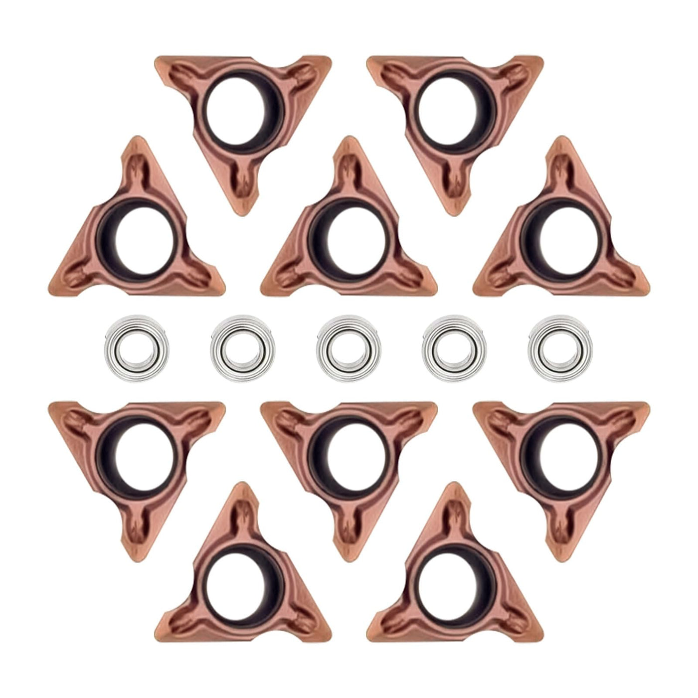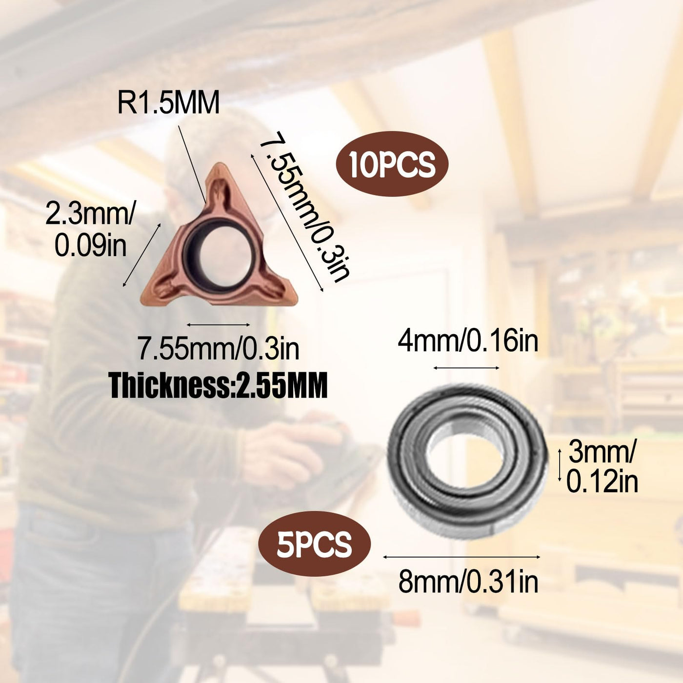 Mini 45° Pneumatic Chamfering Machine Kit with 2 Interchangeable Precision Blades and Bearings, 1/4" Air Inlet for Metal Burr Deburring (10 Round Inserts) 10 Round Insert