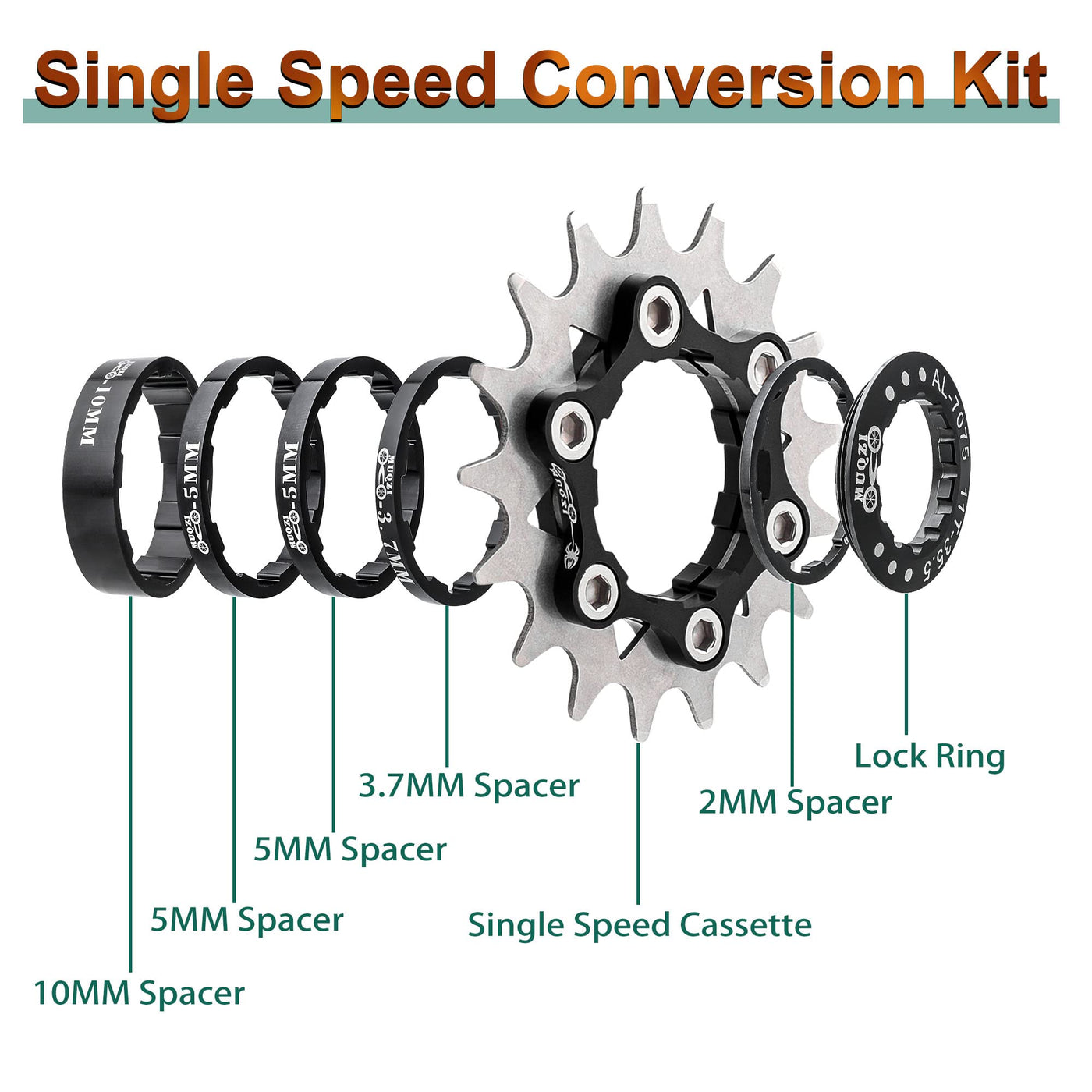 - Compatable with:Single speed conversion kit sizes: 13T/14T/15T/16T. Suitable for racing bikes, road bikes, mountain bikes. Compatible with Shimano and Sram Hubs.