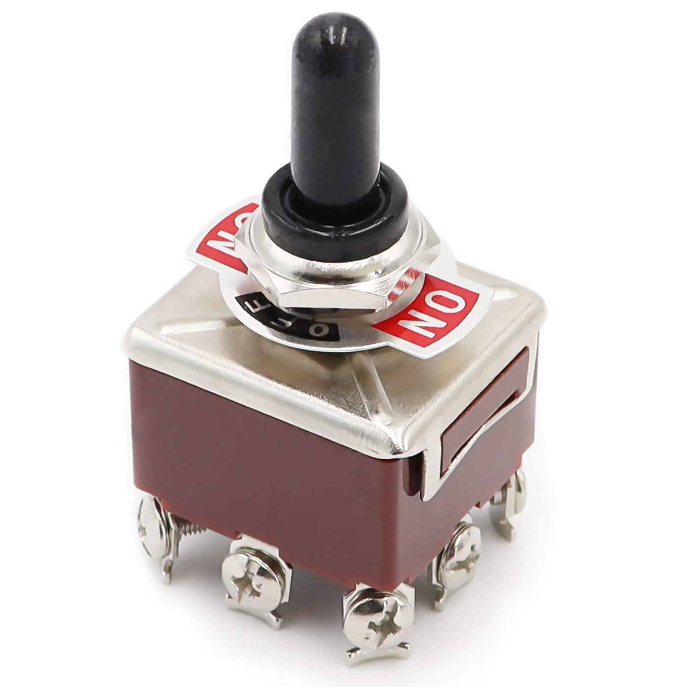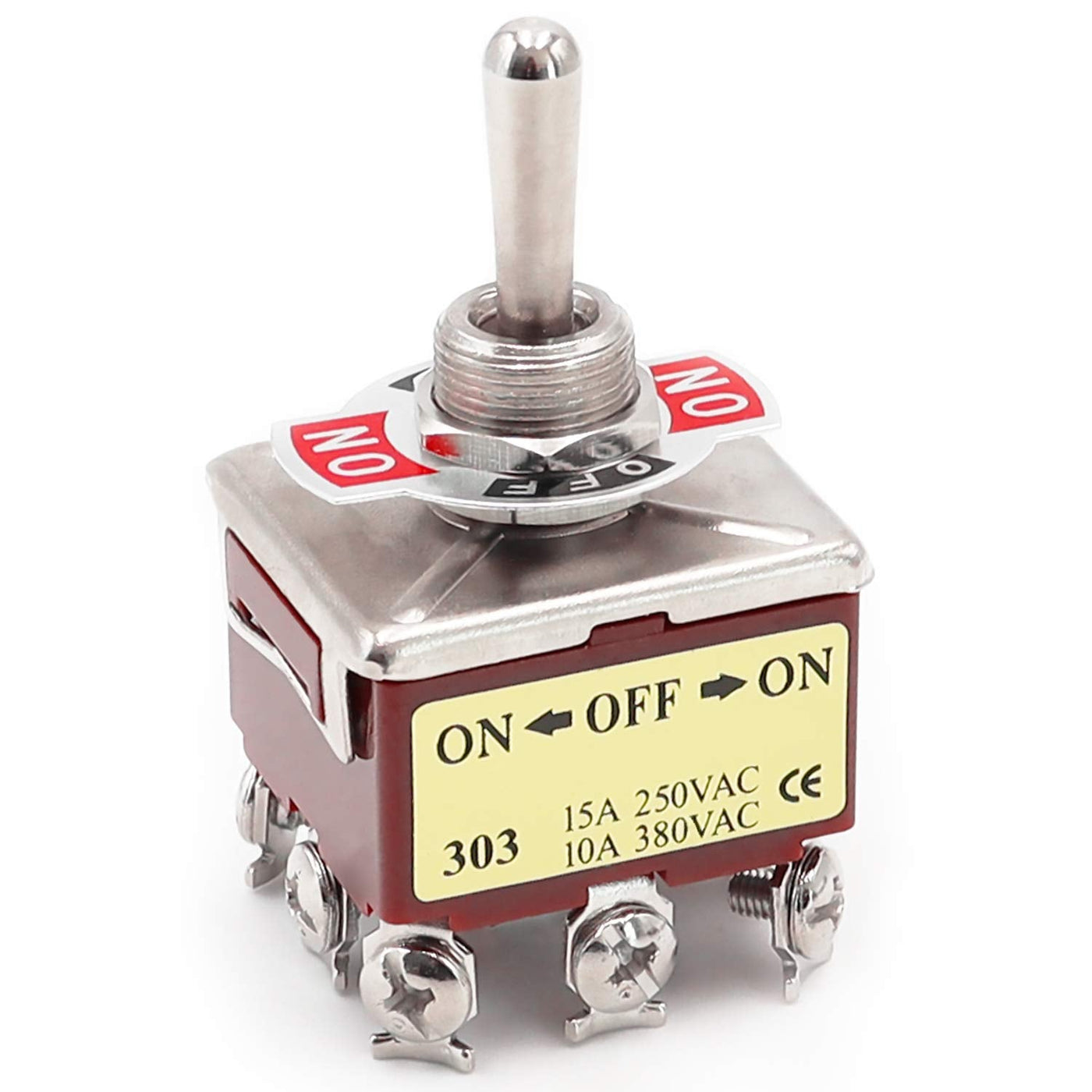 mxuteuk Heavy Duty Rocker Toggle Switch 3 Position 3PDT 9 Terminal ON/Off/ON 15A 250V 10A 380V Toggle Switches with Metal Knob Cover Cap Waterproof TEN-303