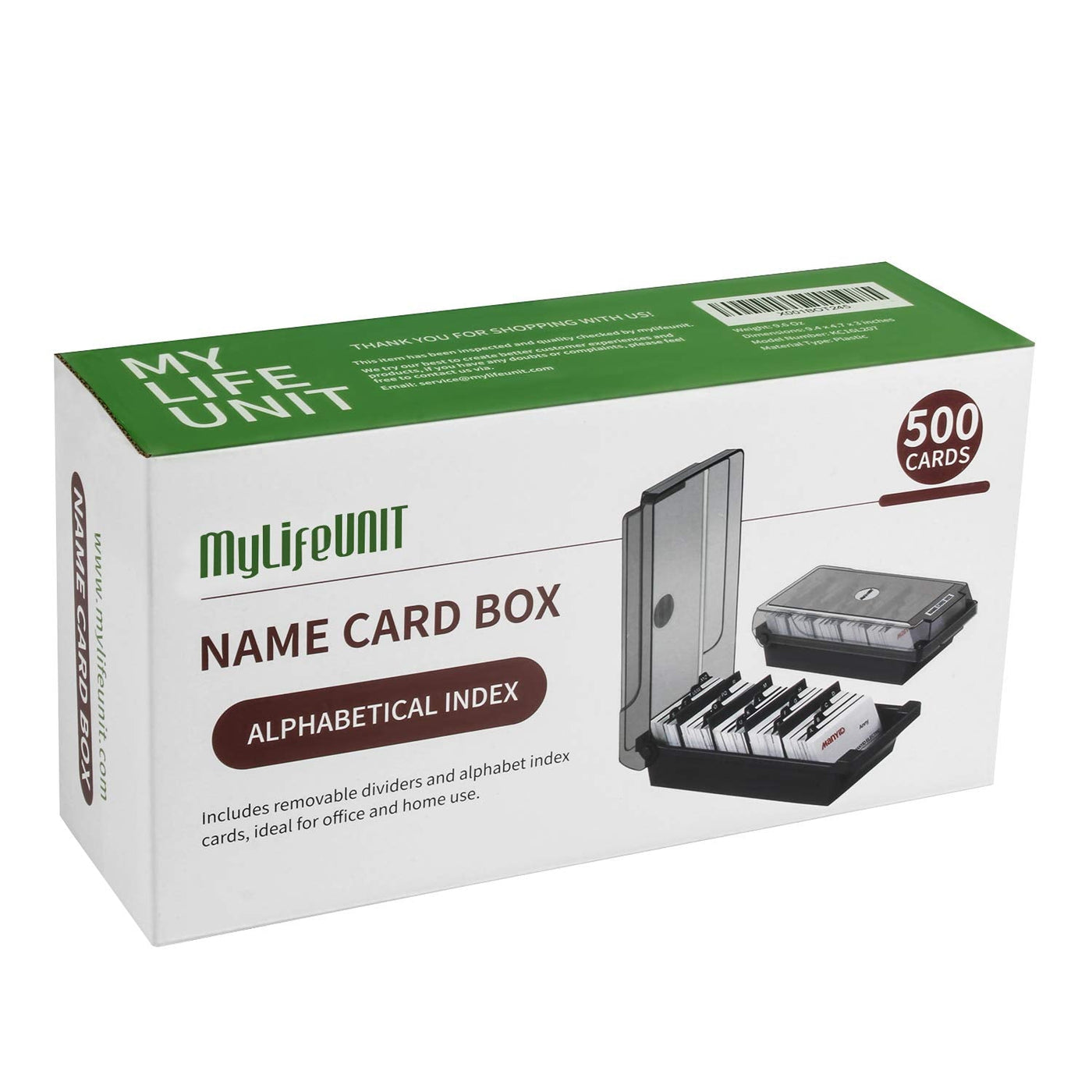 Business Card Organizer Box Orderly store your business cardsKeep your desktop clean and tidySave you more desktop spaceSave more time looking for name cards Business Card Holder for Desk Large Capacity Business Card Organizer Our business card holder can hold up to 500 standard business cards. Large capacity name card is suitable for office, hotel or home. If you feel too mess with so many business cards, this large capacity business card box will help you, it can help you organize and store messy business cards. Business card organizer contains A-Z index cards Good assistant to collect business cards Great for protecting your business cards Up to 500 standard business cards capacity Suitable for 2" x 3.5" standard cards Perfect for home, office and reception desktop Size: 9.4 x 4.7 x 3 inches (L x W x H) Read more Four Divider Boards Four fixed plastic divider boards provide support for your business cards to stand up. When looking for a business card, the plastic dividers can be flipped at a certain angle with the business cards, which is convenient for finding and viewing the information of name cards. Alphabet Index Cards Business card holder comes with A-Z alphabetical index tabs for organization, find the business card quickly and improve your work efficiency. A-Z alphabets help you to classify your name cards based on the first alphabet of the name. Transparent Cover The attractive business card file box comes with transparent cover allows you to see the business cards clearly, which can save your time to get a card. In addition, you can clearly see the remaining capacity of the name card organizer. Read more Too many business cards are too messy, is it a waste of time to find them? This is a practical desk business card holder that for every business man or office workers who deal with plenty of cards, you will feel no more mess with it. If you often collect a large number of business cards, you will need a large-capacity business card case to help you store and sort these business cards. You can place business cards in the business card case in an orderly manner. When you need a business card, you can quickly find it to improve work efficiency. Exquisite and Stylish Business Card Case Made of harmless PP materiel, it is durable and not easy to break. The base is with anti skid design, it will keep stable on your desk with the rubber pads. Compared with normal card rack, this holder is more suitable to stay on your desk. Compared with black or other opaque cover, transparent cover allows you to see the business cards clearly and save time to get a card since you will know the exact location before you open the holder. Read more