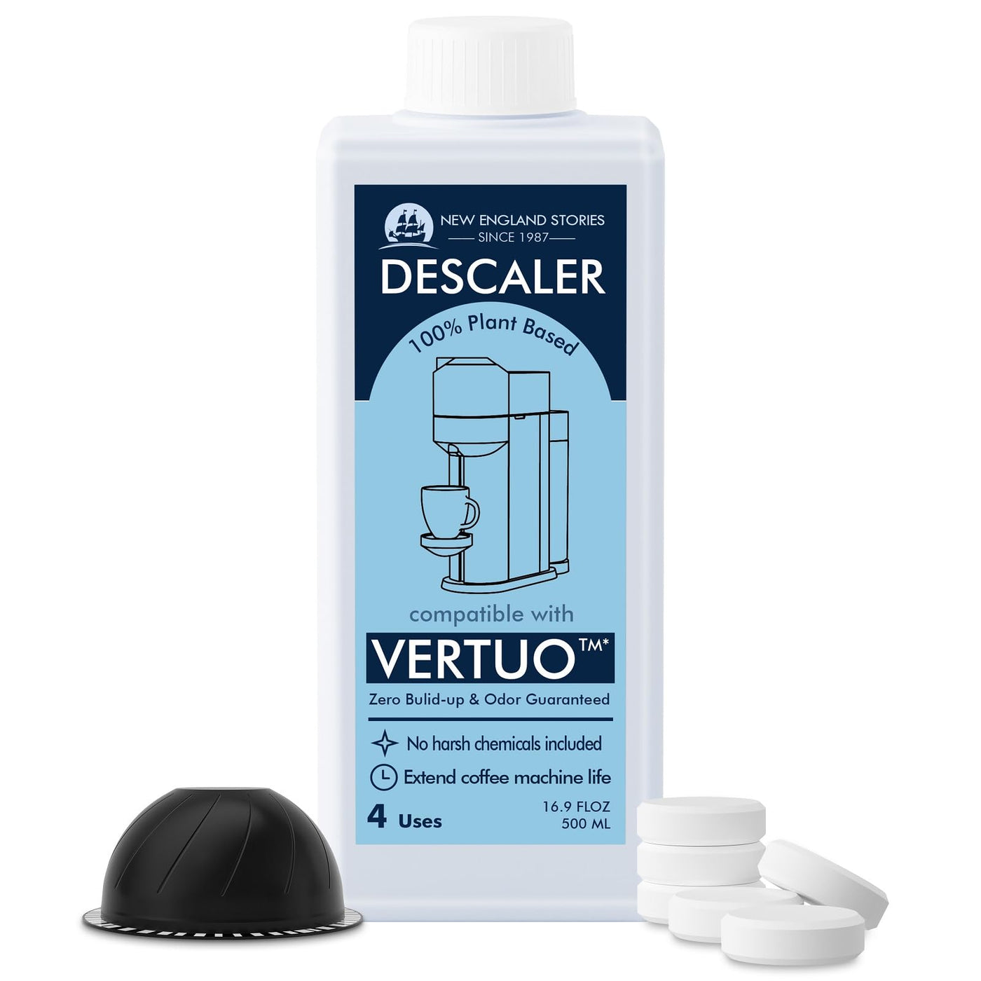 New England Stories Nespresso Compatible Descaling Kit, 12 Months Cleaning Set for Vertuoline Brewer, Includes 1 Bottle(4 Uses) of Descaling Solution, 12 Cleaning Tablets and 1 Reusable Pod