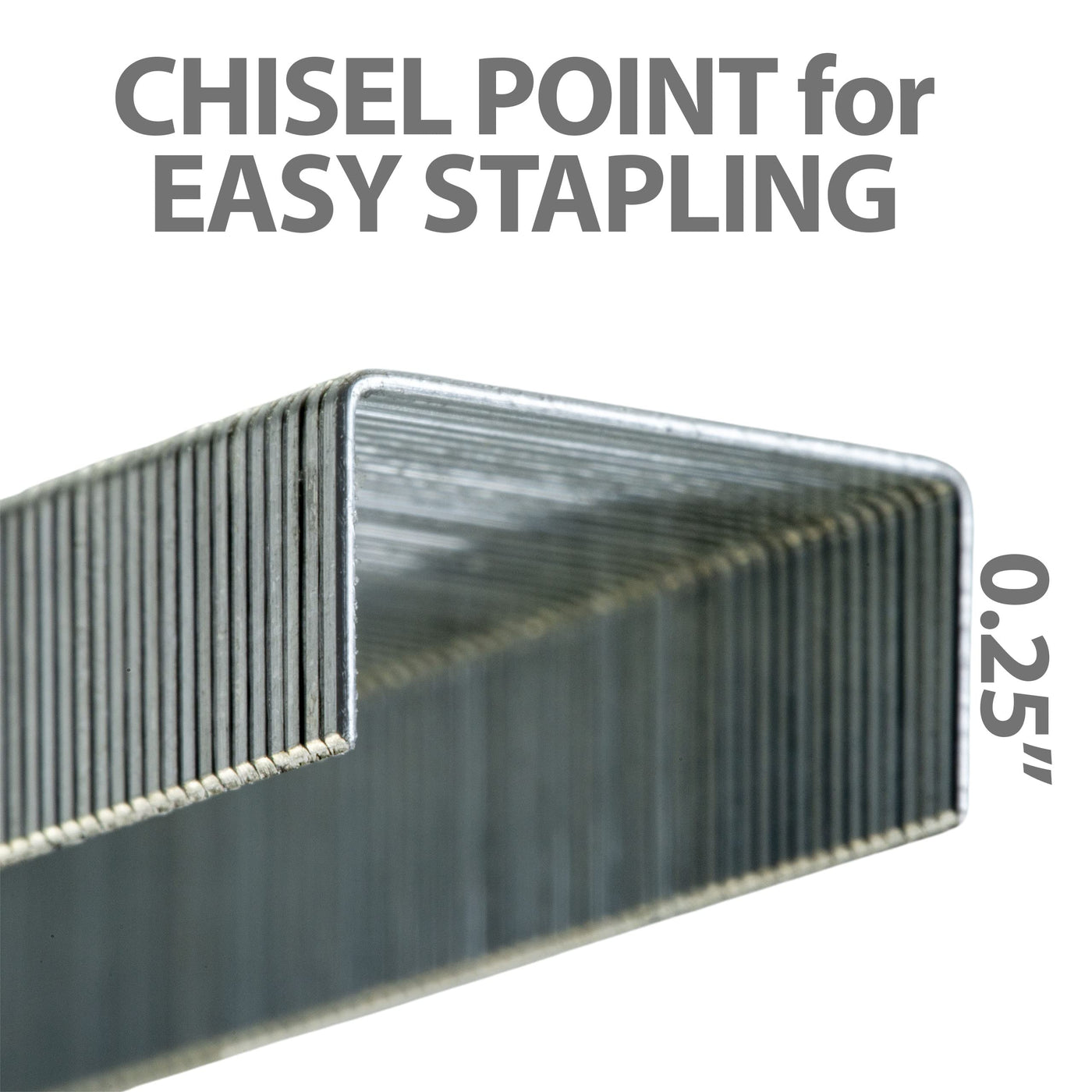 Precision engineered chisel point staples easily penetrates papers and reduces mist-staples. Suitable for any full strip stapler including all oic brand full strip staplers. Leg length is 1/4-inch with a strip count of 210. The stapling sheet capacity is 20 sheets of 20 lbs. Paper. Includes 5 boxes of staples.