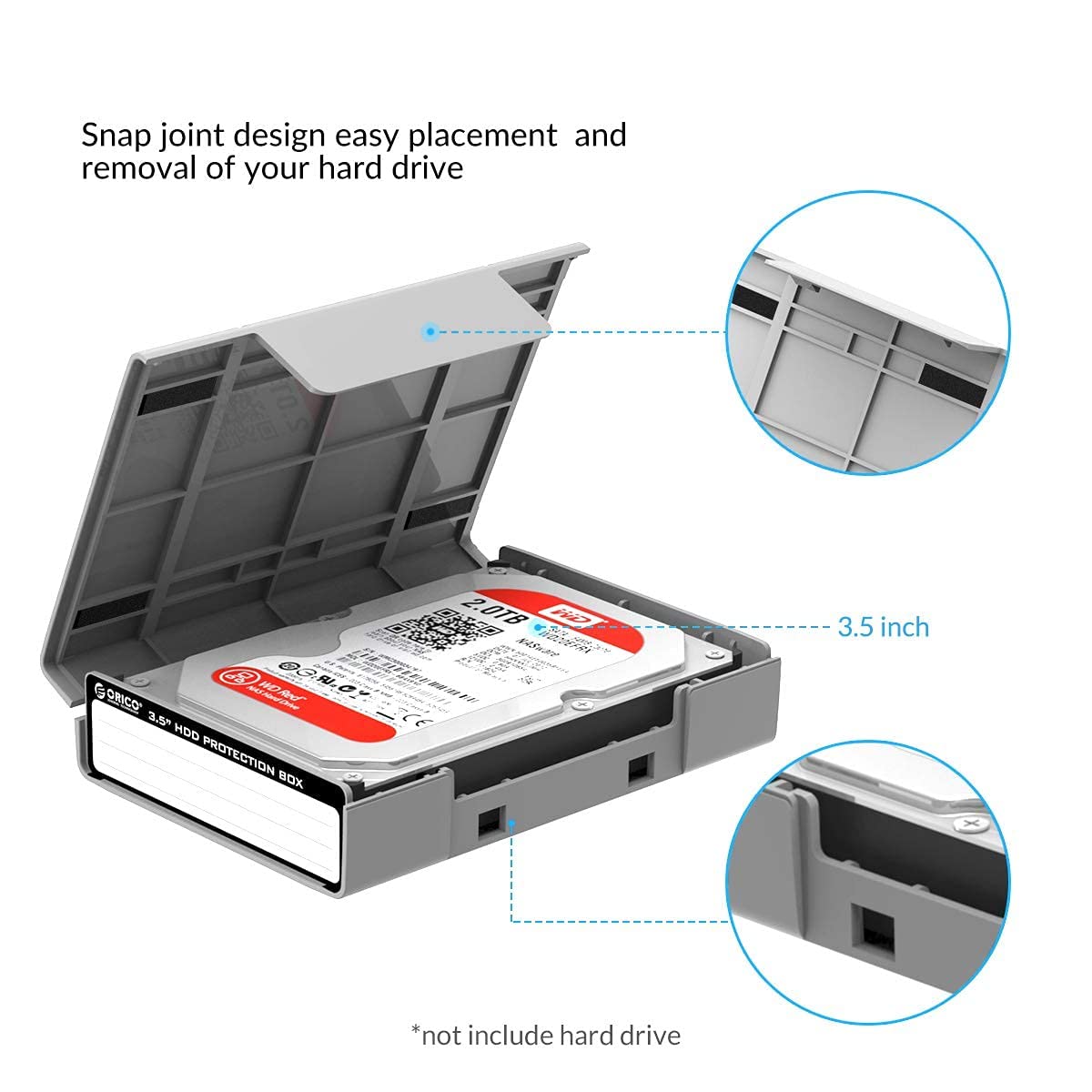Maximum Protection For Data Security ORICO 3.5 inch Hard Drive Protective Case with high quality material is a ultimate bodyguard for your hard drive,It features dust proof, moisture proof, shockproof, and anti- static ,The external & internal reinforcing rib Providing Extra Layer of Protection.Ideal solution for 3.5 inch HDD protection Maximum Protection ORICO hard drive protection box with high quality material is a ultimate bodyguard for your hard drive.Built-in anti-vibration and anti-static EVA cushioning mat for maximum HDD protection,the case proves to be an indispensable companion for traveling around Book-style design allows easy opening. then you can manage it like a book and put in your table.Stack protection boxes up and down with the ingenious design. The same type of hard disk protection box can be stacked neatly and stably, reducing the space and clutter of the desktop Two snap joint on the side of the Orico hard drive case, Easy buckle and open mechanism produce a user-friendly experience With marking label on theTop and Bottom of the storage case, users can write freely and then find target hard drives easily,which help you locate your files more accurately and quickly Read more Read more Nowadays, data is one of the most important assets for computer users. This high quality hard drive protection box that is dust resistant and crash proof with external & internal reinforcing rib providing extra layer of protection is the best choose for you to protect your HDD. What is in the box 5 x ORICO 3.5 inch HDD Protection Case 1 x User Manual 1 x Service Card