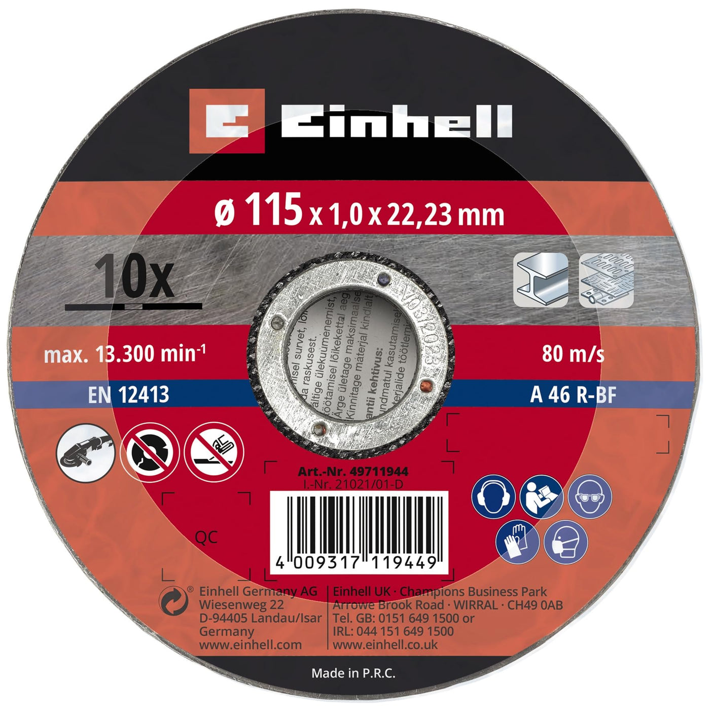 - Angle Grinder Accessories - The original Einhell cutting discs thin 115 x 1.0 mm are a suitable accessory or replacement part for the Einhell angle grinders.