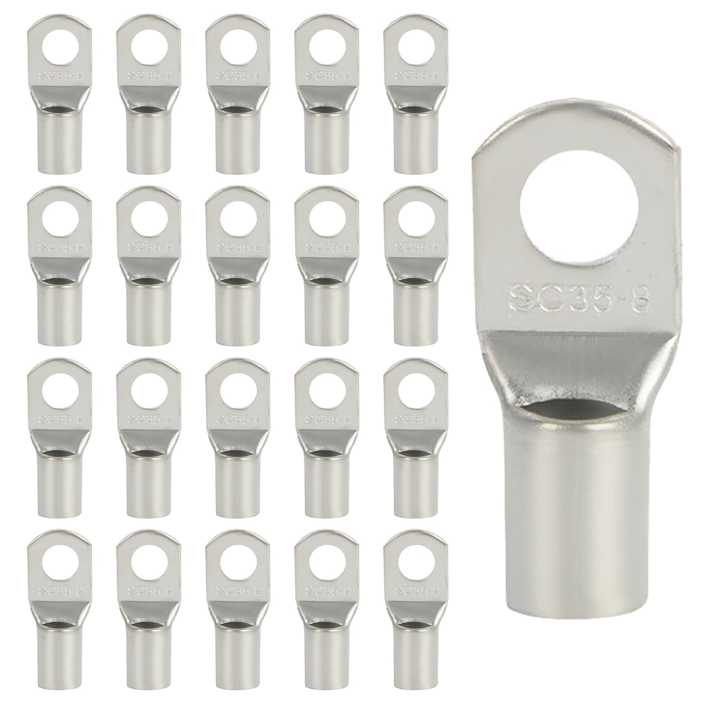 Pack of 20 Cable Lugs 10 mm2 Tube Cable Lug M6 Ring Cable Lug Thickened Copper Uninsulated SC Cable Lugs Silver (Silver, SC35-8)