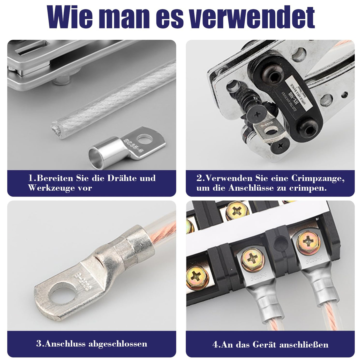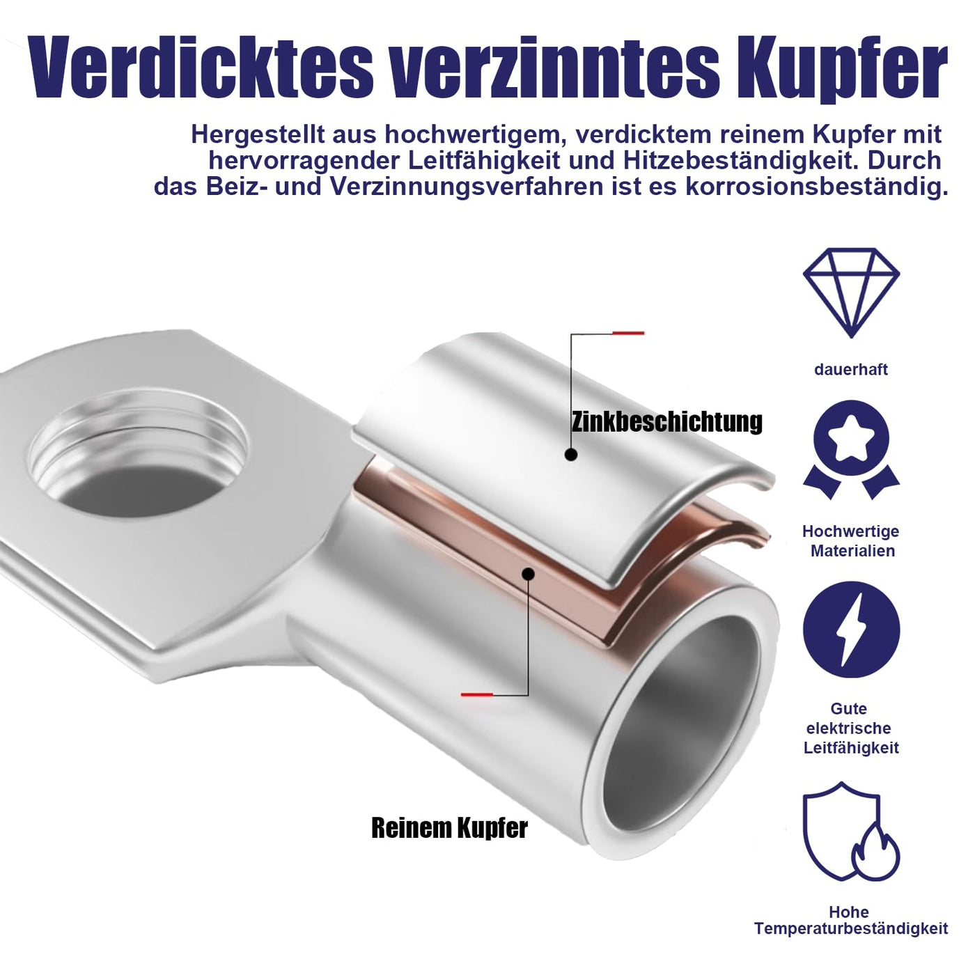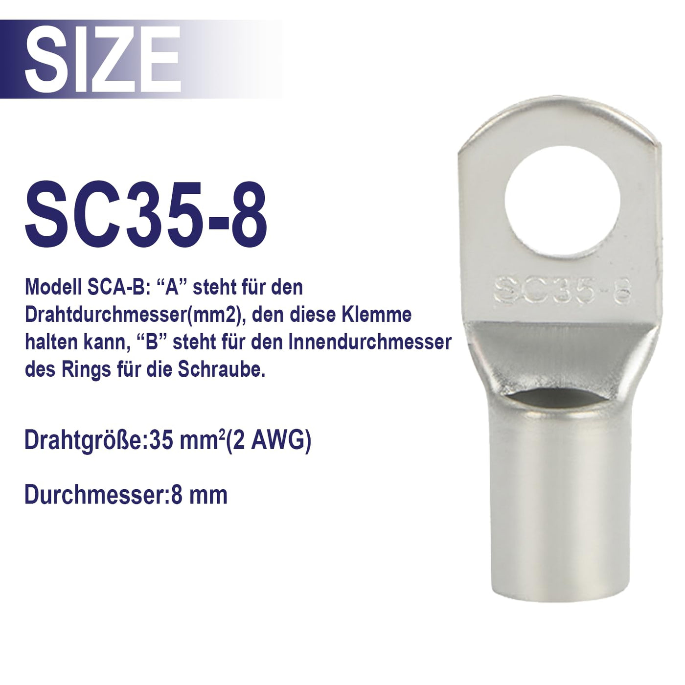 Dawenur high-quality cable lugs, tube cable lugs, blank, SC ring terminal for battery cables, car distribution boxes. Multiple model options, for power cables, power cables and cables with the cable cross section 6-35 mm² connection size M6/M8/10, easy crimping possible with a crimping tool. Making safe electrical connections in electrical installation e.g. in the home, garden, garage, car, truck, motorcycle, bicycle.