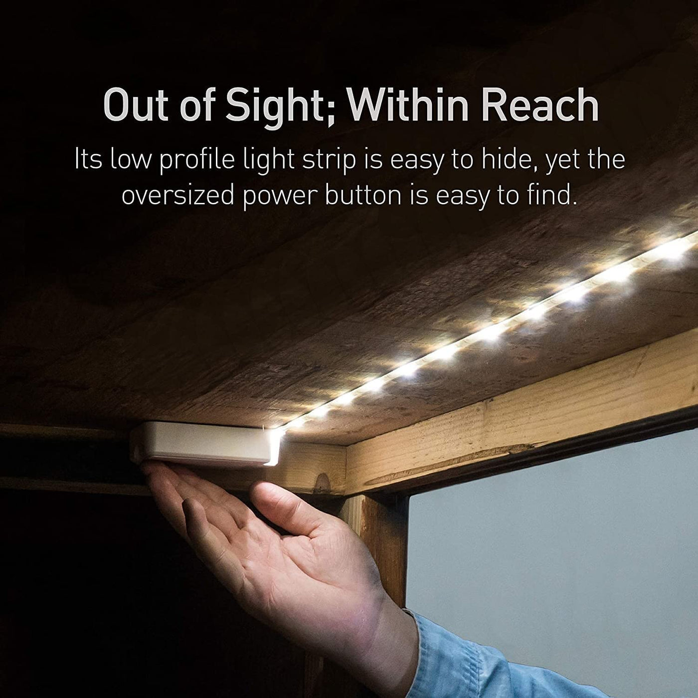 - Discreet Design: Push lights & puck lights not your style? Try this LED strip light - it stays out of sight & has an easy-to-find power button