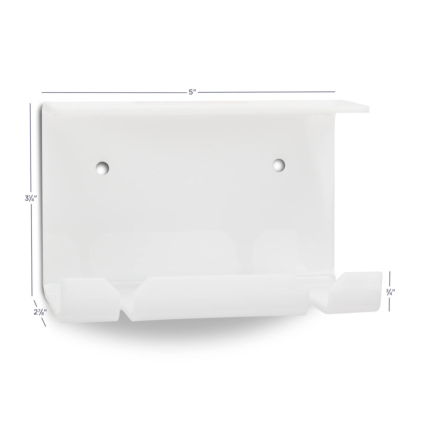 Our simple and practical Digital X-ray Sensor Hanger keeps one or more costly sensors out of harm's way. Use it to hang one end or both ends of the sensor. Holds multiple sizes at once. Built-in top shelf can be used to store a box of sensor covers. White acrylic is predrilled for mounting with hardware included. 5" wide. Manufacturer Contact Information