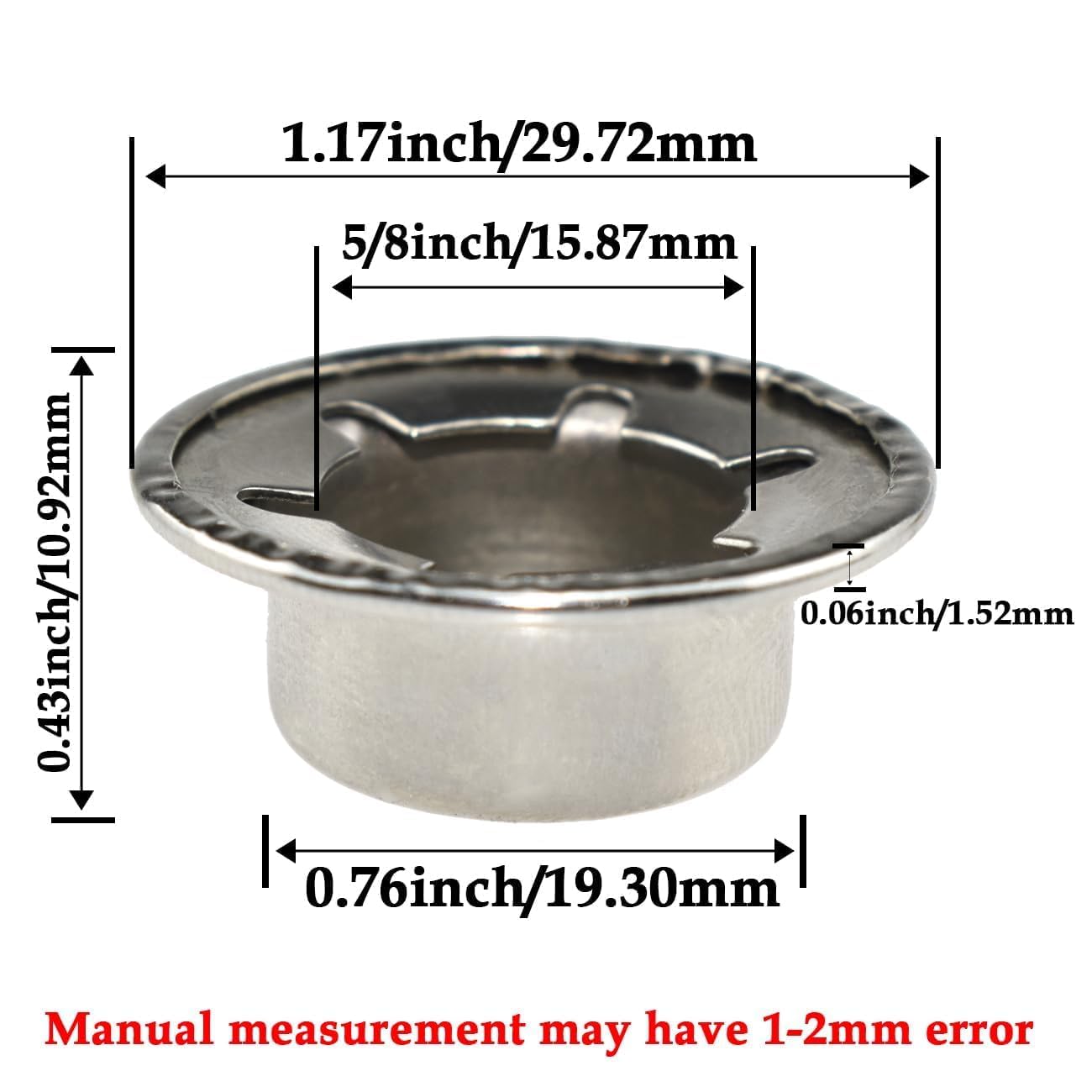 Function: Special customized nut covers can be used for all kinds of wheelbarrows, lawn mowers, rolling dumpster wheels, for covering the exposed ends of axles and rods, shafts or studs. They protect the end of the axle from damage and environmental factors such as dirt, moisture, and corrosion.Materials: Alloy material is stronger, longer use and more reliable Unique process: stamping process production, the material surface glossy and bright, rust and corrosion resistance effect is good. The product is forged by multiple processes, strict control of each production process, the surface is smooth and burr-free. Special reminders: 1.Please check the package carefully before signing, if there is any damage, please refuse to sign. 2.Designed for permanent placement, no need to use specific disassembly tools.Design: Features an internally toothed design that grips the axle securely when pressed into place. The teeth create a strong hold by biting into the material of the axle. Advantages 1. Quick Installation: - Can be installed quickly and easily without the need for specialized tools or equipment. 2. Cost-Effective: - Generally more affordable than threaded fasteners and other complex retention methods. 3. Secure Fit: - Provides a strong and reliable hold, ensuring components stay in place during operation. 4. Versatile: - Suitable for a wide range of applications across different industries. 5. Minimal Maintenance: - Once installed, they require little to no maintenance, contributing to the longevity and reliability of the assembly. Push Nut Axle Caps are an efficient and versatile fastening solution used to secure components on axles and shafts.