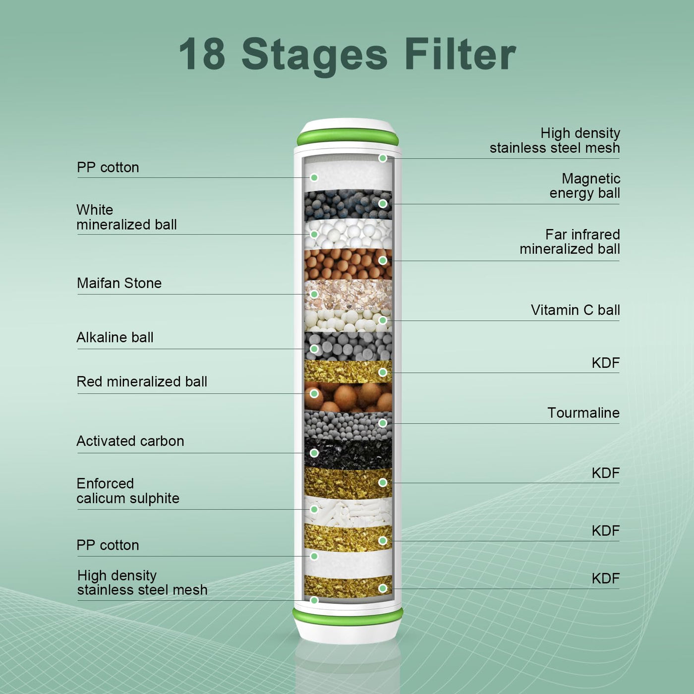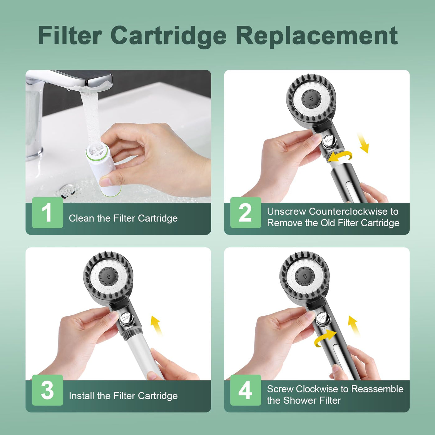 Enhance your shower experience with our advanced 18-layer shower filter.- Equipped with 18 layers of filter materials such as KDF, activated carbon, calcium sulfite, and vitamin C.- Reduce chlorine, fluoride and other impurities in water. Our hard water shower filter provides soft water for a comfortable shower experience.- Helps care for delicate skinWater quality improvementFilters hard water to avoid excessive drying and protect delicate skin.Repairs damaged hair, making it softer and smoother.Effectively eliminates chlorine smell and unpleasant odor.Product SpecificationsReplaceable filter size: 4.13 × 1.06 × 1.06 inchesFilter element service life:The service life of each filter element is approximately 6 months under normal use.Package Contents:2X Shower Filter
