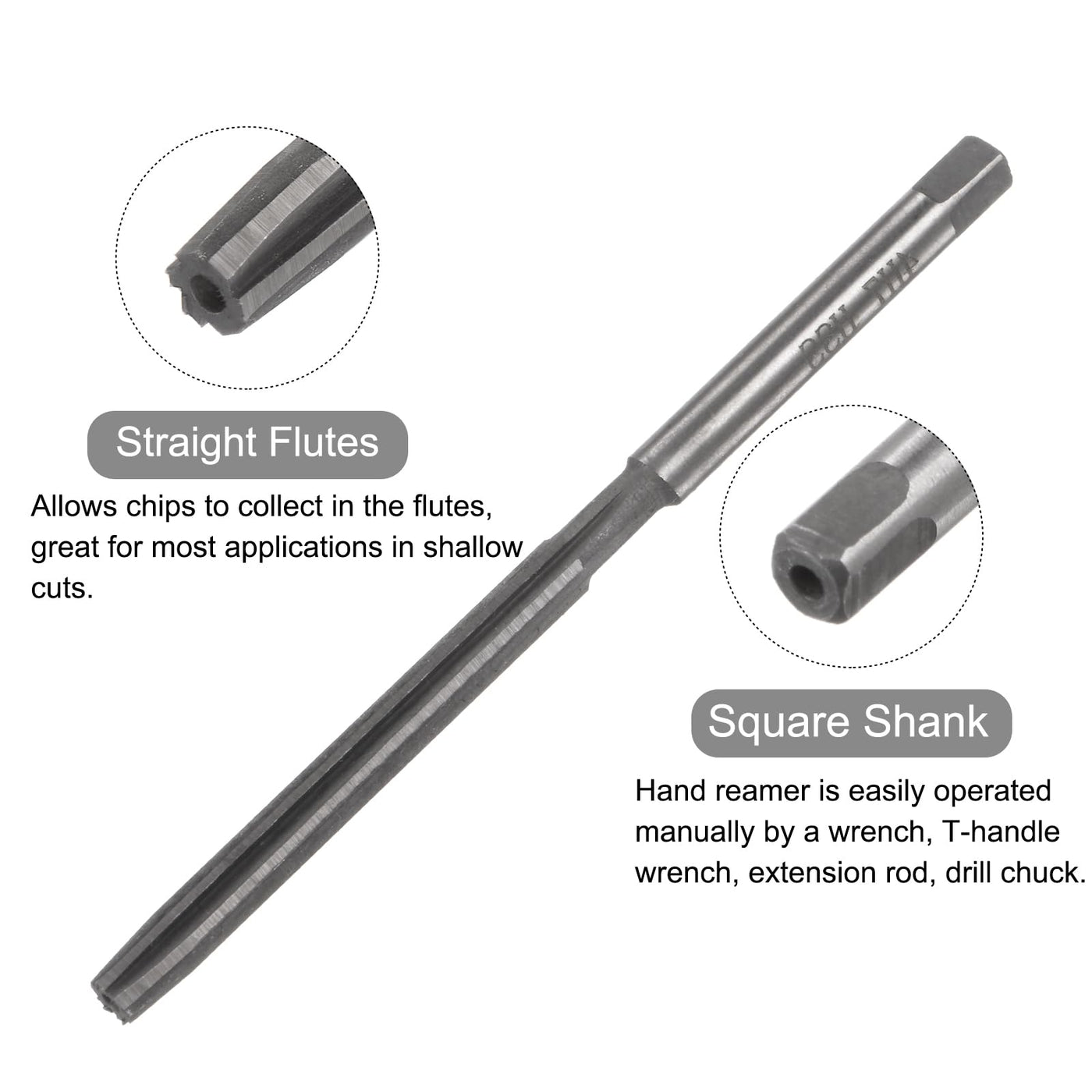 - Hand reamer size: cutting diameter: 4 mm / 0.157 inches; tolerance: H7; cutting usable length: 38 mm / 1.496 inches; shaft diameter: 4 mm / 0.157 inches; shaft length: 30 mm / 1.181 inches; total length: 75 mm / 2.953 inches; style: straight groove, square shank