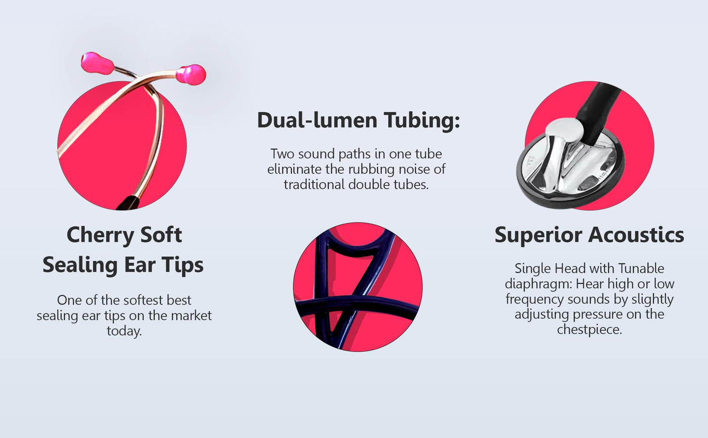 - Dual-Lumen Technology - Advanced bi-channel tube design eliminates ambient noise interference. This single-head model delivers pristine acoustics through its two-in-one tubing system, ensuring clear sound transmission for accurate assessment.