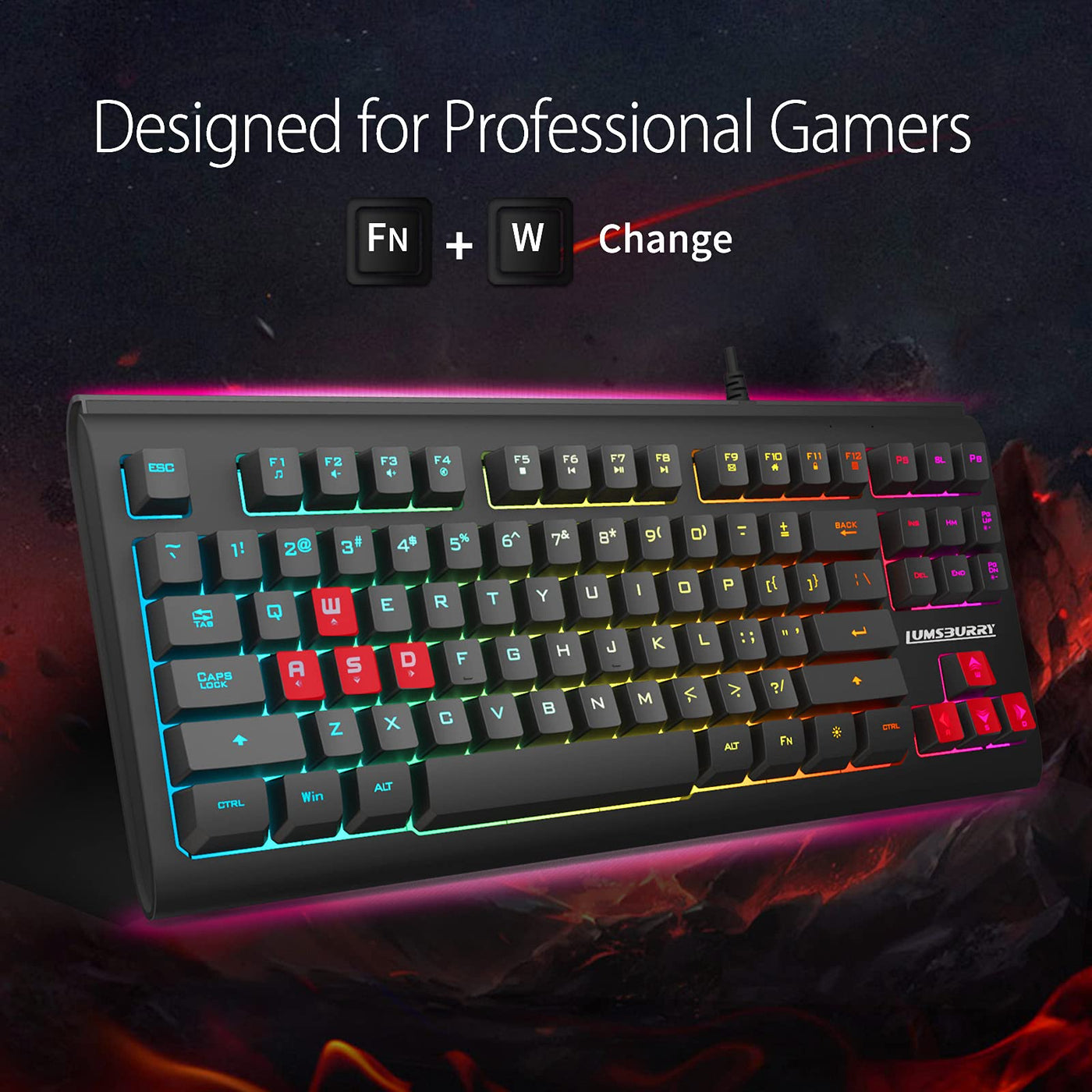 - 87-key Compact KeyboardThis LED backlit keyboard is compact designed, which take less space on your desk. Easy to pack and transport.