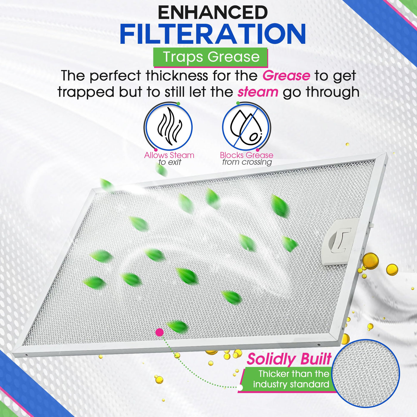 - THICKER AND BETTER: Our aluminum range hood filter is expertly enhanced to be thicker than the industry standard enabling our stove vent filter to stop more grease from entering.
