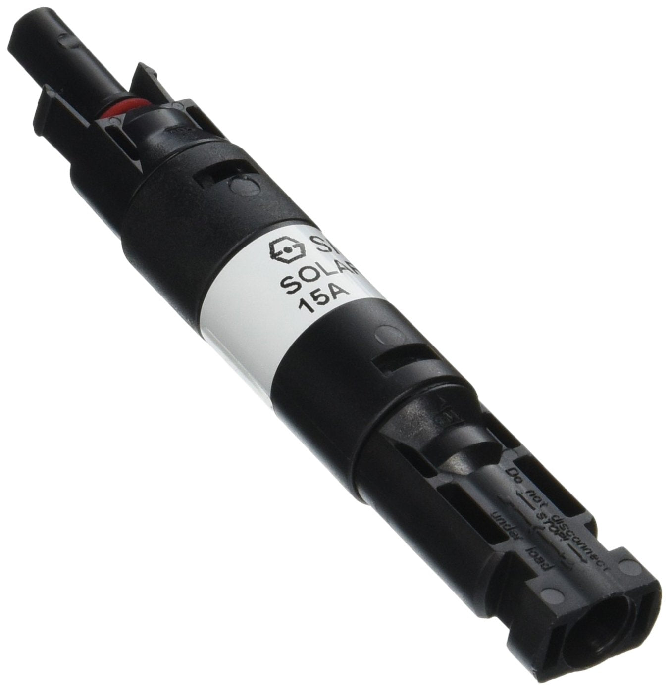 Description This product is a 15A fuse embedded in a waterproof fuse holder and features MC4 connector cables on each end. Designed to provide complete single circuit protection to your solar array, it utilizes fuses to prevent large currents from damaging the solar panels. Specifications Renogy 15A MC4 Solar In-Line Fuse Holder Waterproof w/ Fuse Rated Current: 15A Rated Voltage: 1000 V DC Test Voltage: 6000V (50Hz,1 min) Degree of Protection: IP2/IP67 Suitable Connector: MC4 Connector Contact Resistance of Plug Connector:1m? Insertion Force / Withdrawal Force: ?50N / ?50N Contact Material: Copper, Silver Plated Fuse Can Replace Insulation Material: PPO Temperature Range: -40 to +125°C Weight: 1.23 oz Dimensions: 4.8 x 0.8 x 0.8 In Safety tips For protection against electric shock, PV connectors must be isolated from the power supply while being assembled or disassembled. The end product must provide protection from electric shock. Unplugging under load: PV plug connections must not be unplugged while under load. They can be placed in a no load state by switching off the DC/AC converter or breaking the AC circuit interrupter. Plugging and unplugging while under voltage is permitted. Disconnected connectors should be protected from dirt and water with sealing caps. Warranty Information 1-year material warranty We sell entire home/business solar system both on grid and off grid, including racking, inverters and other system components. Please call us and extension sales.