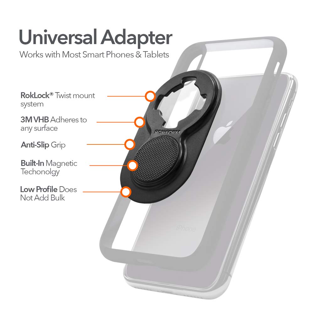 Rokform – Universal Adapter with Twist Lock, Magnetic Phone Mount, Adapter Mounts to Almost Any Smartphone, Phone Case, Tablet, or Flat Surface with 3M VHB Adhesive (Black)