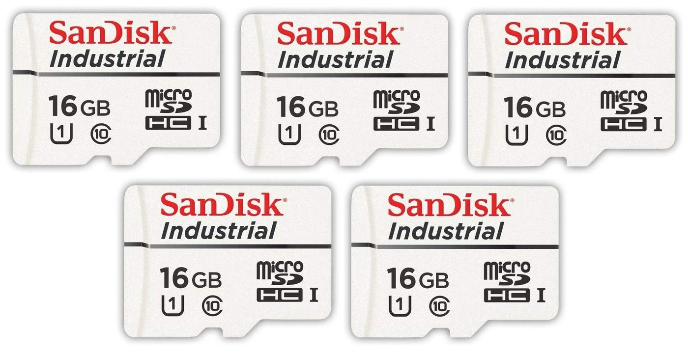 SanDisk Industrial 16GB Micro SD Memory Card Class 10 UHS-I MicroSDHC (Bulk 5 Pack) in Cases (SDSDQAF3-016G-I) Bundle with (1) Everything But Stromboli Card Reader