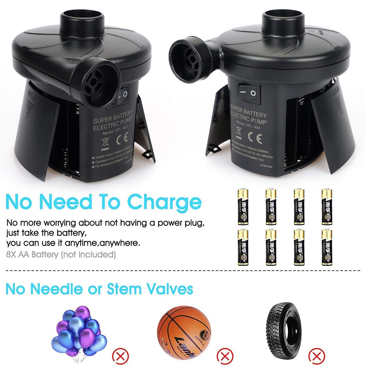 sanipoe Battery Powered Air Mattress Pump, Electric Quick-Fill Blower Portable Inflator Deflator for Inflatables Raft Bed Boat Pool Toy, Black