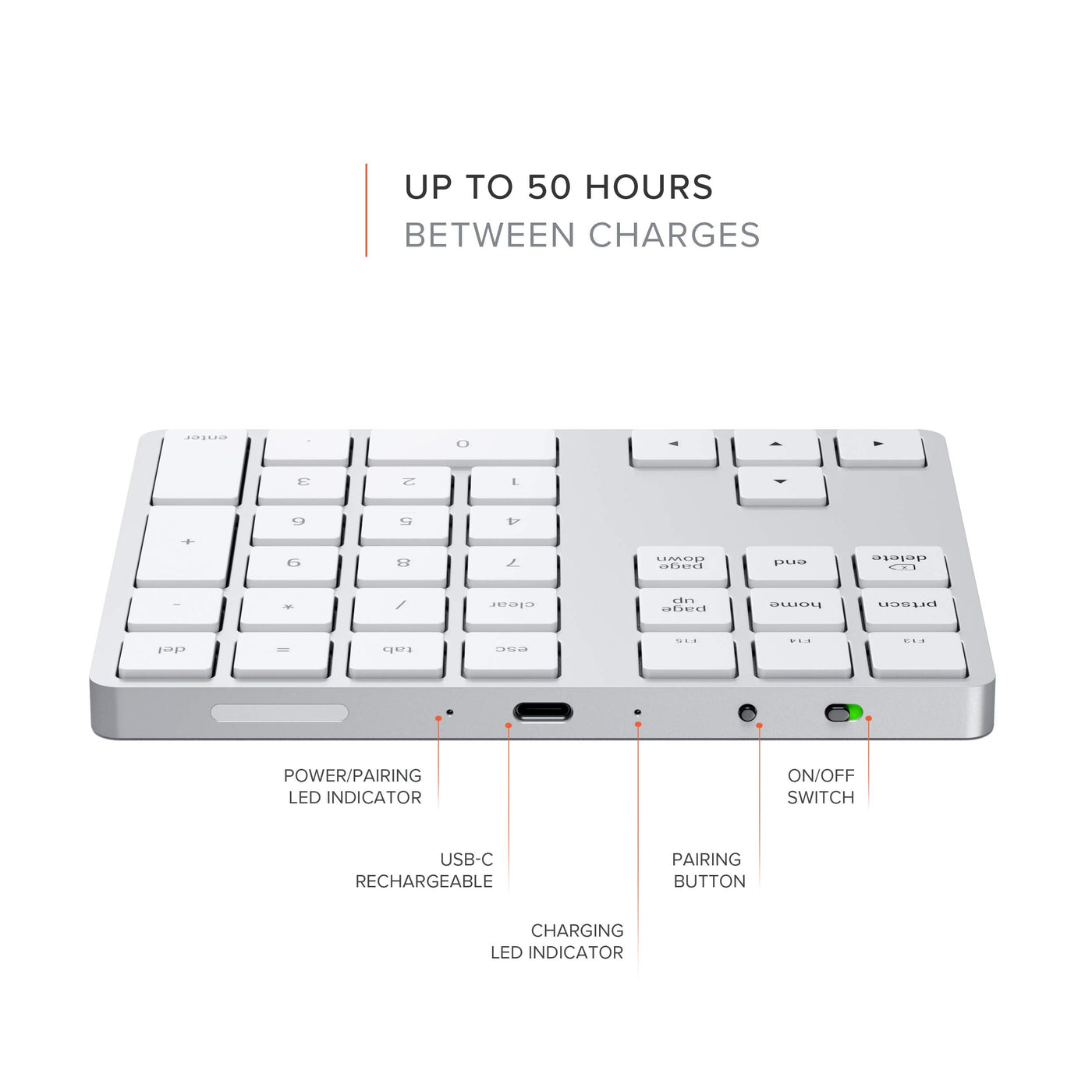 Satechi Bluetooth Extended Numeric Keypad – Slim Rechargeable 34-Key Numberpad – Compatible with 2020 MacBook Air, 2020 iPad Pro, 2020/2019 MacBook Pro, iMac/iMac Pro (Silver)