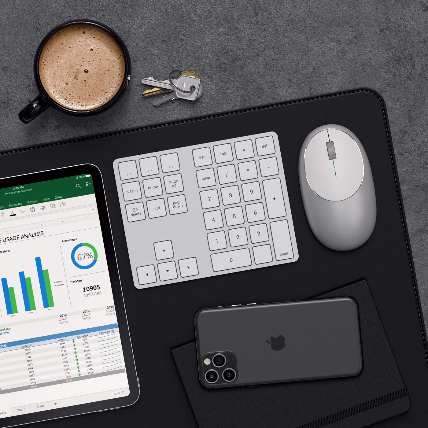 Satechi Bluetooth Extended Numeric Keypad – Slim Rechargeable 34-Key Numberpad – Compatible with 2020 MacBook Air, 2020 iPad Pro, 2020/2019 MacBook Pro, iMac/iMac Pro (Silver) Silver