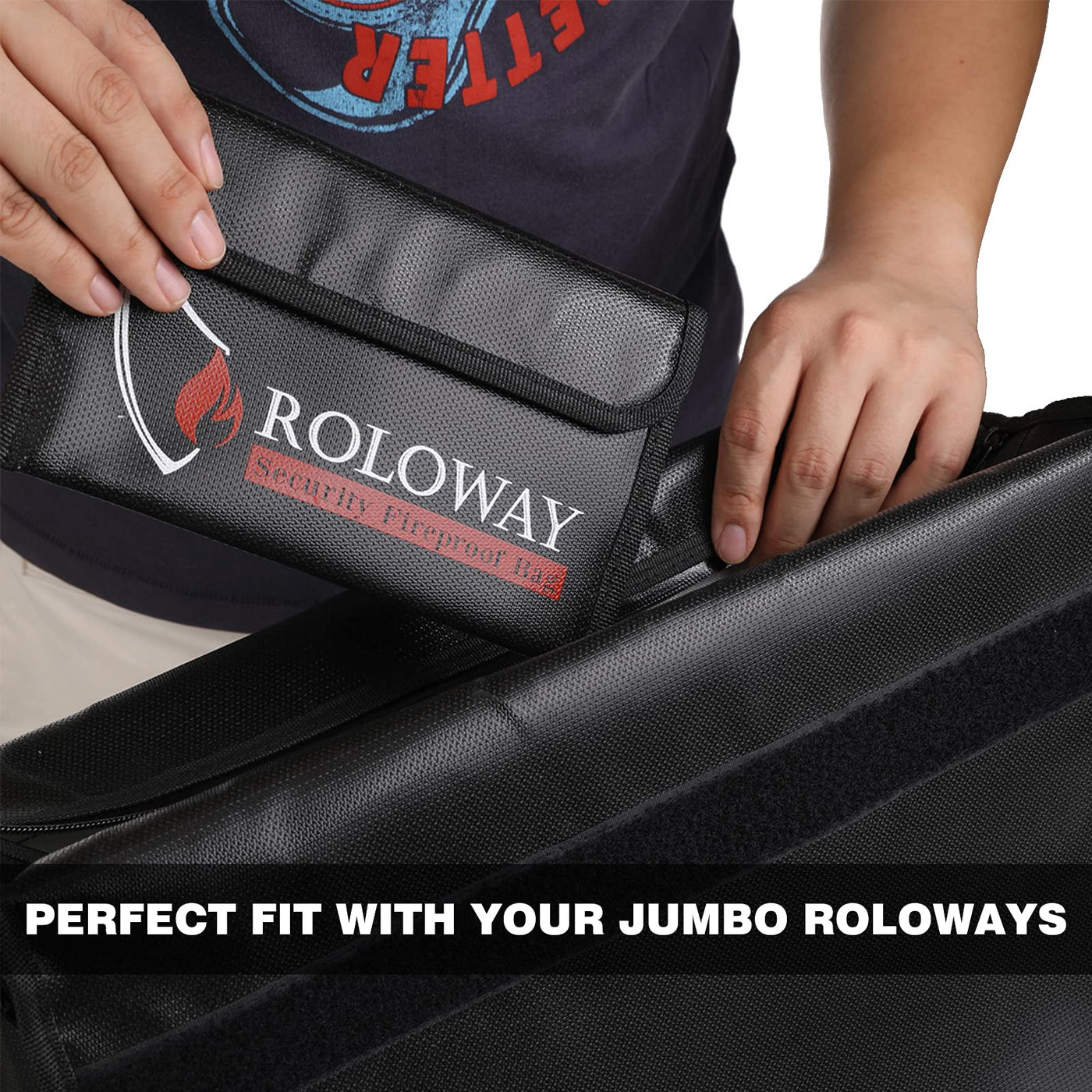 Read more Fireproof & Water Resistant Bag Non-itchy Silicone Coated Fireproof Fiberglass Dual-layer Fireproof Fiberglass Materials Portable Size: 5 x 8 inches Upgraded Safety: Wider Hook & Loop Closure Perfect to Stow Small Valuables Perfectly Fit Jumbo ROLOWAY Fireproof Bags Super Easy to Store and Carry ROLOWAY Small Fireproof Bags (2-Pack) ROLOWAY is a professional company, which provides TOP CLASS Fireproof Bags in the market. We have earned GREAT REPUTATION of protecting customers' valuables. Our products provide PREMIUM QUALITY & PERFECT PROTECTION: Dual-layer Fireproof Fiberglass for Great Fireproof Protection.Non-itchy Silicone Coating for Great Water Resistant Protection.Wider Hook & Loop Closure for More Security.Portable Size for Small Valuables.Perfectly Fit Jumbo ROLOWAY Fireproof Bags. Read more Portable Size for Small Valuables Our Small Fireproof Bags are SPECIFICALLY designed to stow your passport, cash, letters, precious photos, jewelry, keys, cards and more.The FIREPROOF and WATER RESISTANT materials enable our fireproof envelope to survive fire and perform reliable in ALL weather conditions. Perfectly Fit Jumbo ROLOWAYs Our other JUMBO size fireproof bag: (15 x 12 x 5 inches & 17 x 12 x 5.8 inches) have earned GREAT REPUTATION of protecting customer's big size valuables. These 2 PORTABLE Fireproof Money Bags are fitting our JUMBO ROLOWAYs perfectly, and offer the MOST COMPLETE protection TOGETHER in the market. Portable and Multi- use Our Small Fireproof Bags are suitable for indoors, outdoors, travel, camping, and EMERGENCY PREPARATION, such as rain storms, hurricanes and earthquake.With the PORTABLE design, we hope you could keep ALL your important things WELL PREPARED & PROTECTED anytime and anywhere. Read more Read more ROLOWAY Fireproof Money Bags (2-Pack) ROLOWAY Large Fireproof Safe Box Set ROLOWAY Fireproof Safe Box Set (Black) ROLOWAY Fireproof Document Bags ROLOWAY Large Fireproof Bag Size 5 x 8 inches 13.8 x 9.85 x 9.85 inches (Exterior) 9 x 6.6 x 6.5 inches (Exterior) 13.4 x 9.8 inches 15 x 12 x 5 inches Construction Dual-layer Fireproof & Water Resistant Materials: 1) Silicone Coated Fiberglass Fabric 2) PVC Coated Fiberglass Fabric Reinforced Alloy Steel, Dual Steel Locking Bolts, Stain-resistant Powder Coating, Enhanced Pry-resistant Concealed Hinges Reinforced Alloy Steel, Dual Steel Locking Bolts, Stain- resistant Powder Coating, Enhanced Pry-resistant Concealed Hinges Dual-layer Fireproof & Water Resistant Materials: 1) Silicone Coated Fiberglass Fabric 2) PVC Coated Fiberglass Fabric Dual-layer Fireproof & Water Resistant Materials: 1) Silicone Coated Fiberglass Fabric 2) PVC Coated Fiberglass Fabric Additional Protection 1) Enlarged Hook & Loop Closure 2) Tight Stitched Seams 1) Extra 2 Fireproof Money Bags 2) Dual Methods to Open 3) 2 x Override Keys 4) Wall Mounting Design 5) Removable Shelf 6) Instruction & AA Batteries Included 1) Extra Fireproof Money Bag 2) Dual Methods to Open 3) 2 x Override Keys 4) Instruction Included 5) 4 x AA Batteries Included 1) Waterproof Zipper 2) Interlayer Pockets 3) Wrist Strap 4) Fire-retarded seams Inside Design 1) Brand Lockable Zipper 2) Hook & Loop Closure 3) Soft Handle 4) Adjustable Shoulder Strap 5) Additional Fireproof Money Bag Standard UL94 VTM-0 UL94 VTM-0 (Fireproof Money Bag) UL94 VTM-0 (Fireproof Money Bag) UL94 VTM-0 UL94 VTM-0 Feature Portable, Fireproof, Water Resistant, Non-itchy, Perfectly Fit Jumbo ROLOWAYs Wall Mounted Steel Safe Box + Fireproof Money Bags for Fire & Water Protection, Smart Capacity for Easy Hidding, Portable, Durable Steel Safe Box + Fireproof Money Bag for Fire & Water Protection, Smart Capacity for Easy Hidding, Portable, Durable Easy to carry, Fireproof, Water Resistant, Non-itchy, Perfectly Fit Jumbo ROLOWAYs Easy Grab & Go, Fireproof, Water Resistant, Non-itchy, Foldable Usage Scenario Protect Passport, Cash, Jewelry, Keys, Cards, Photos, etc. Protect A4 Documents, Certificates, Album, Passport, Money, Credit Cards, Jewelry, etc. Protect Small Valuables: Passport, Money, Credit Cards, Jewelry, etc. Protect A4 Documents, Letters, Cash, Passport, Cards, etc. Protect Laptop, Documents, Passport, Cash, Jewelry, Certification There maybe 1-2 cm differ due to manual measurement.Do not immerse or wash the bag in liquid (water resistant does not mean 100% waterproof).Fireproof does not mean it could support endless fire exposure, we suggest to store our products in a fire safe box for most security.