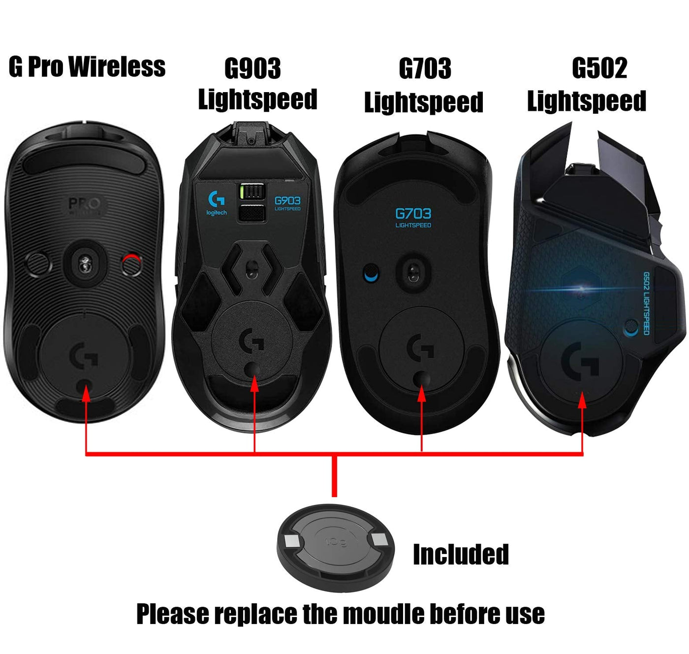 SoarkingLogitech mouse charging station.We do research on the market and many computer accessories products,even use these product in our daily life, then find following solutions:How to use?Step 1,Please replace the charging module at the bottom of the mouse.Step 2,Please tear off the transparent protective film at the bottom of the charging dock, and fix the charging dock on the desktop.Step 3,Plug the wireless receiver of the mouse into the USB port behind the charging dock.Step 4,Connect the charging station to the computer with the charging cable.Put the mouse on the charging base, The mouse will charging.The blue indicator behind the charging base is always on when it connect to the computer.Note:The charging speed is the same as the charging speed of Logitech POWERPLAY, and the charging efficiency is slower than wired charging.The mouse can be only charged up to about 70% to 90% no matter how long it takes,Not up to 100%.This is overcharge protection,It is not the product issue.Warranty:If you have any product problems, please feel free to contact us at your order system, we will answer your questions within 24 hours, and handle the measures according to the actual situation. Tips:1.Please pay attention to this product only compatible with Logitech G Pro X Superlight,G903 Wireless Lightspeed,G Pro Wireless Wireless Lightspeed,G703 Wireless Lightspeed,G502 Wireless Lightspeed.What's in the box?1 X Logitech Mouse Charging Dock1 X 1.5m/5.93 Feet Cable1 X Wireless Receiver Moudle Replacement1 X 10g Weight BlockNote:If you want the mouse lightwight,Just remove it.