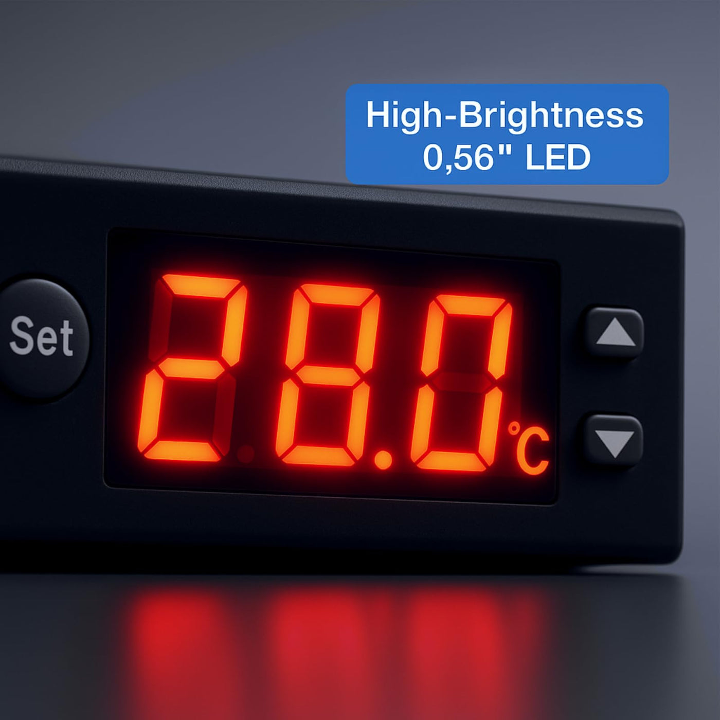 Solar Water Temperature Controller, AC 5A Digital Temperature Controller Thermostat with Sensor Sensor & 76 mm Digital Display for Electric Heating Support