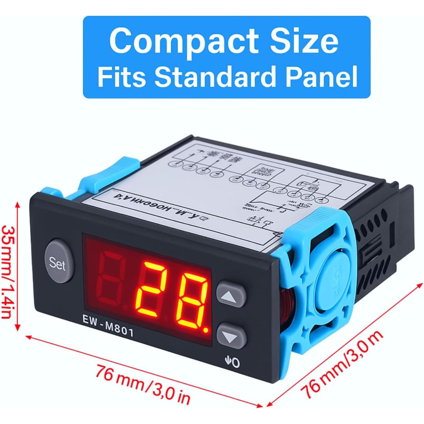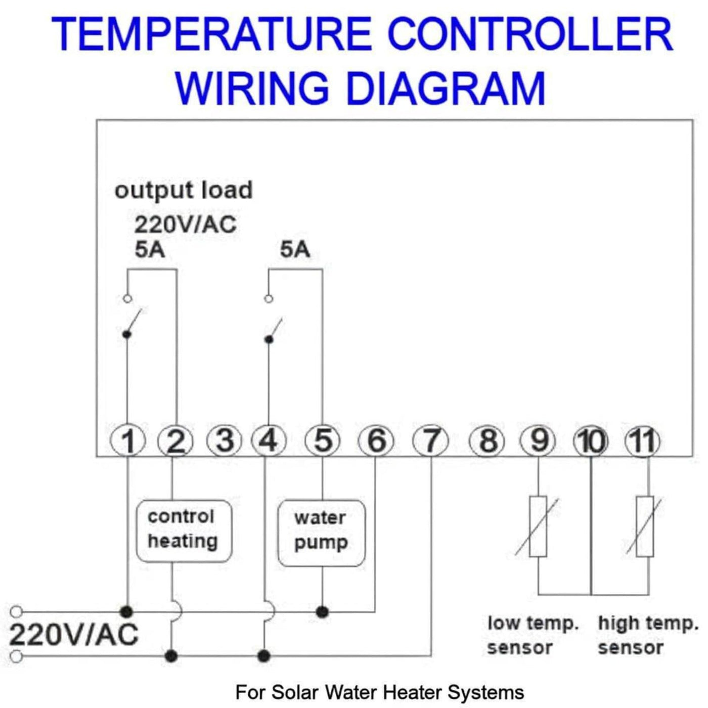 - Universal installation and robust construction: this compact (76 x 76 x 35 mm) thermostat is designed for standard AC220V systems and works in -10C to 50C. Includes 2 sensor probes for easy setup in residential facilities for residential or commercial solar water heating.
