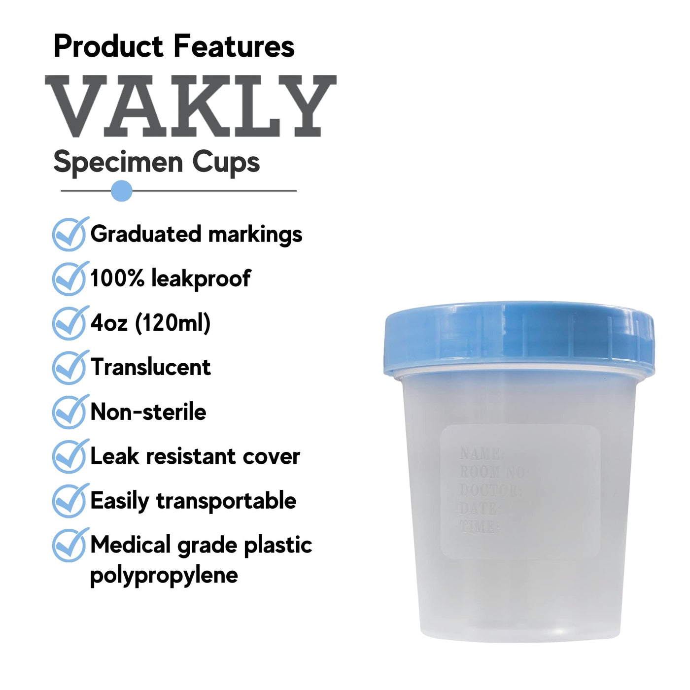 - CLEAN AND LEAKPROOF Each specimen cup comes with a tight sealed screw on cover, keeping your specimen secure and protected during transportation.