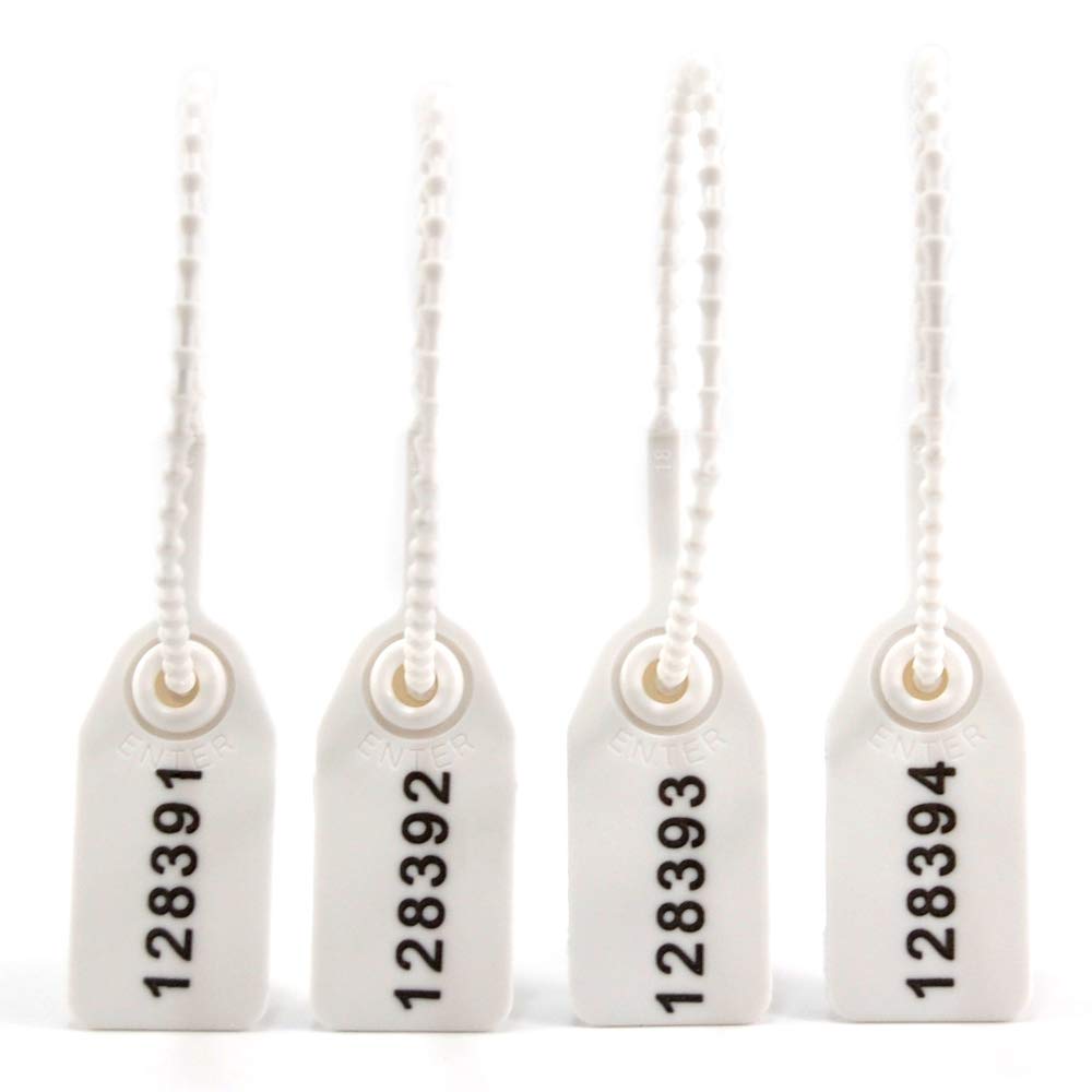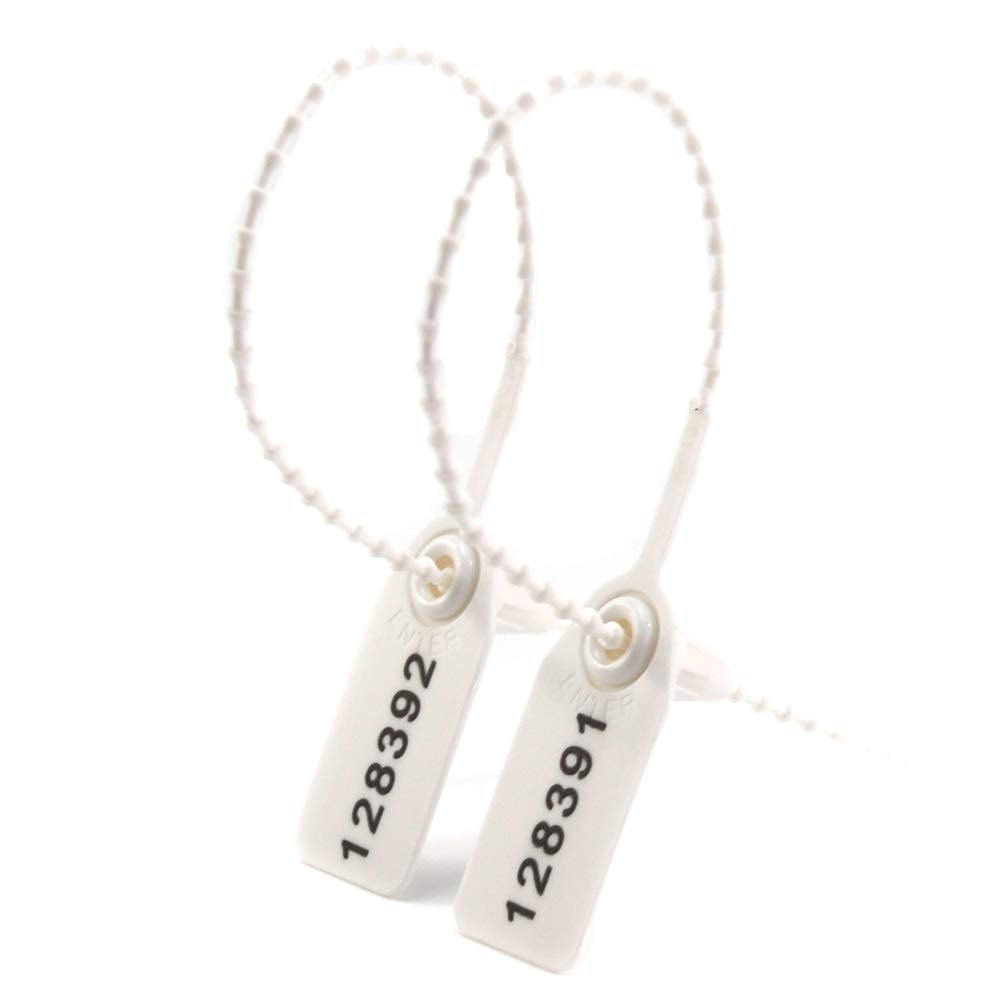 Pull Tight Security Seals - pack of 100:Widely Application:1. Usually used on the shops which are selling baggage, luggage, bags, shoes, clothes, hanging as a signage strap to prevent being tampered or stolen during transit.2. Perfet for the fire extinguisher, first aid kit, emergency exit, ambulance, medicine clinic, it can showing evidence of tampering when broken or removed and can be broken in case of emergency needs with bare hands.3. Secure the luggage when traveling, they can be easily torn off. However, you can quickly spot of luggage tampered with. 4. Secure the trucks, trailer and other logistic which are needs tamper evident seals during loading or offloading.5. Suitable for storage, inventory, warehouse, sacks, cabinet, courier services, vote boxes, donation boxes, whcih are needs to tracking the quantity and keep it from unauthorized access. Particular information:1.Length: 250mm(9.84in)2. Printing: The seals are default laser printed with serial number. We can also print the serial number per customer's request, mail us after place the order.Logo, Company name customization is available when order is over 1000 pcs.3. Locking mechanism: pull tight with adjustable length. Once locked, can't be open, unless break it away. It can be break by hands when in an emergency.4. Material: Polypropylene5. Special note: Due to different light and screen setting, the color of the actual item may slightly different from the images shown. Due to manual measurement, the size of the actual item may have 1-3mm slightly different from the description.