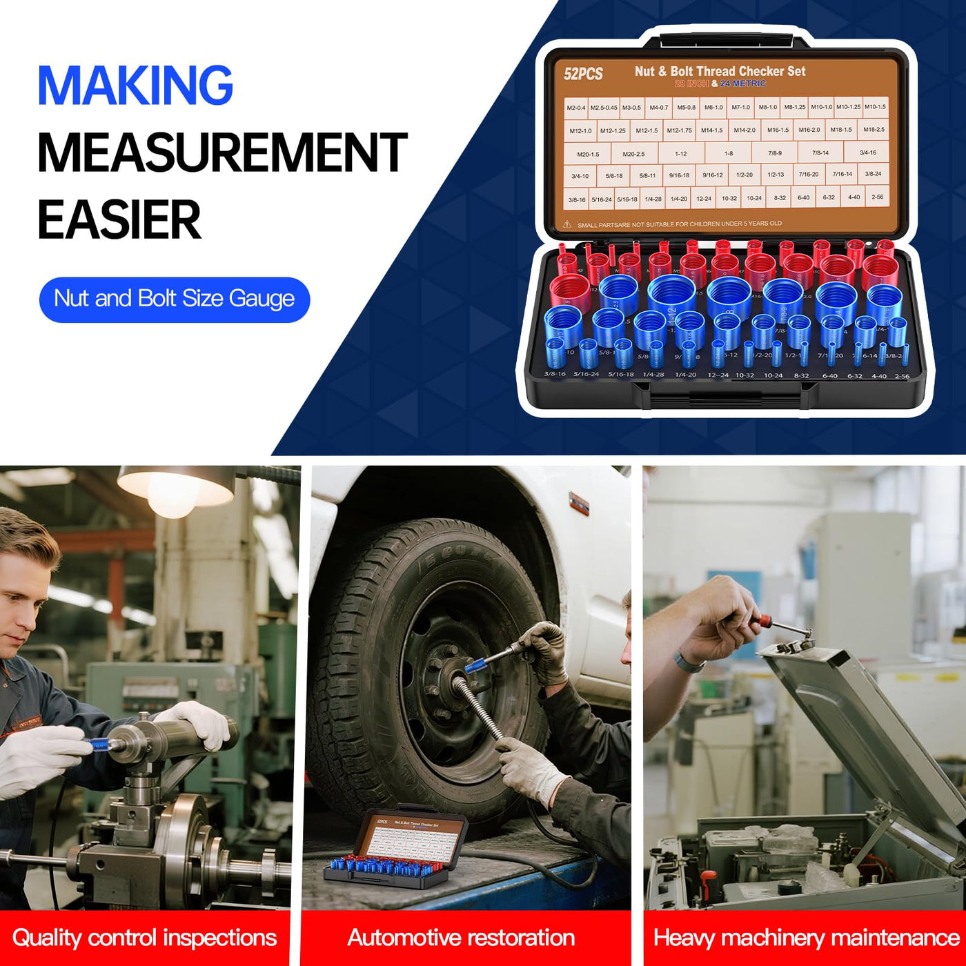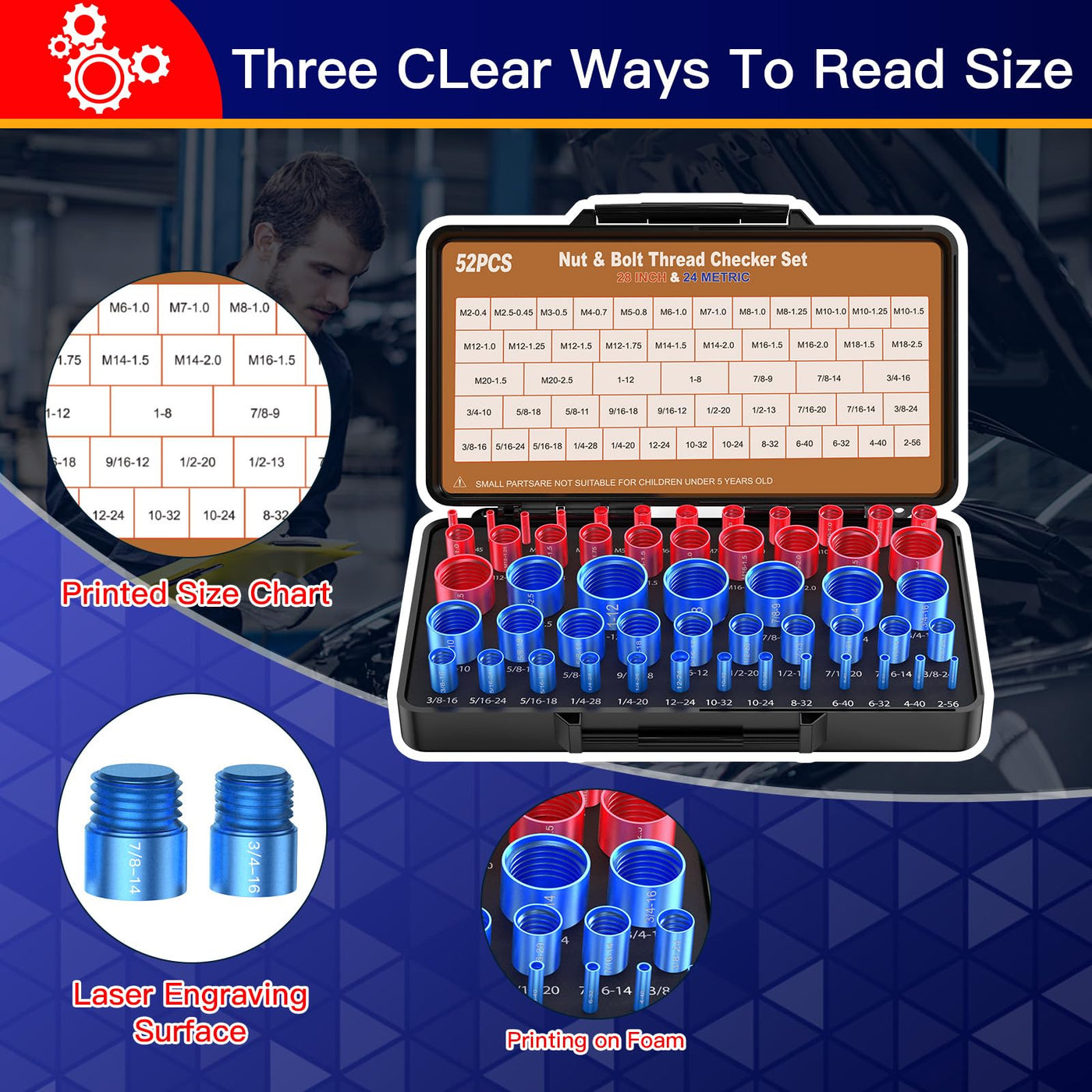 - Organize Your Fasteners Tame The Nut And Bolt ChaosThis 52PCS Thread Checker eliminates the headache of mixed-up nuts and bolts. Mechanics, DIYers, and hobbyists love it for sorting mixed hardwarekeep your toolbox tidy, parts accessible, and projects on track. Plus, its a stellar gift for pros, gearheads, or anyone who hates losing screws.