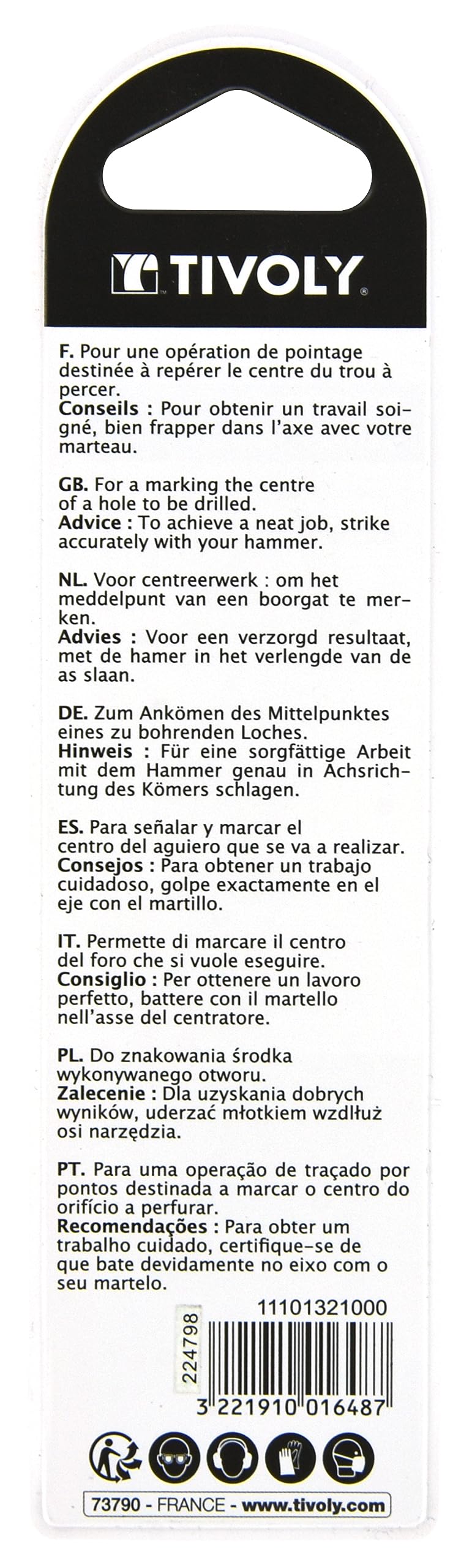 Tivoly 11101321000 Hand Tools Knurled Punch Diameter 10 mm