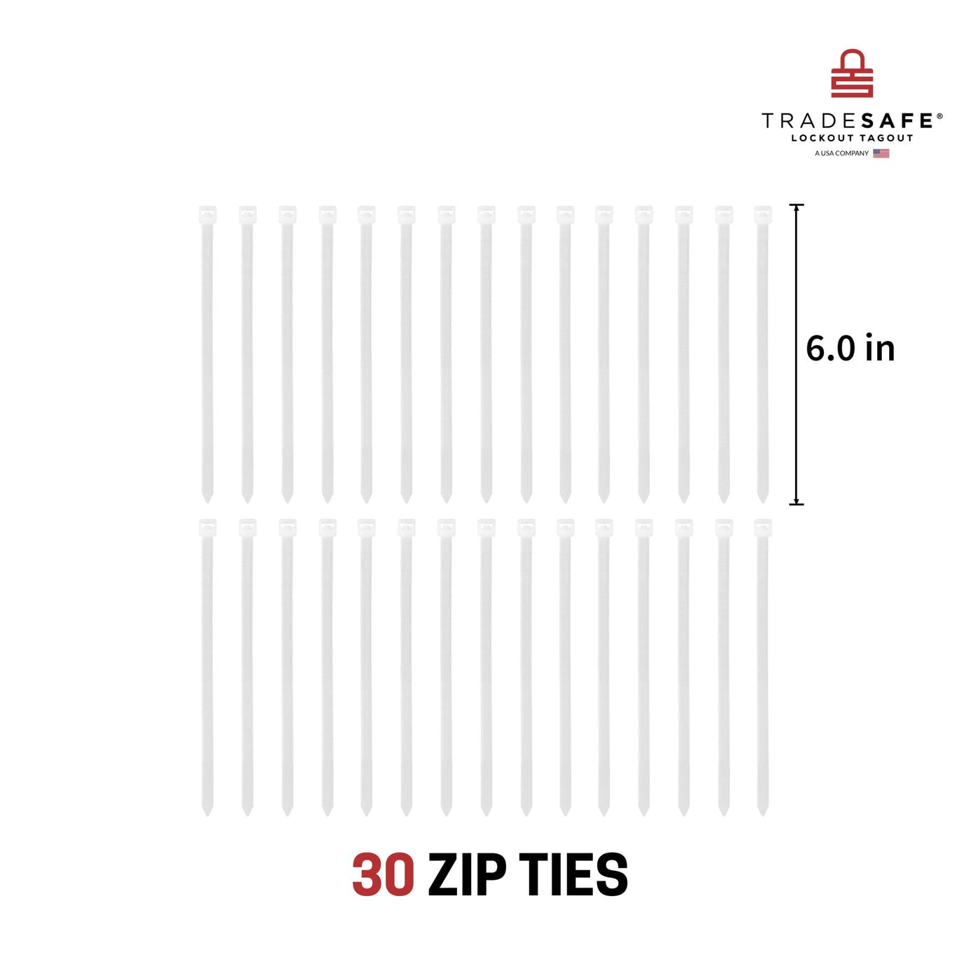 - Pack Includes - (30) LOTO Tags made of 15 mil vinyl and measure 5-12 inch x 3-inch with 5/16-inch diameter tie hole, (30) 6-inch nylon zip ties