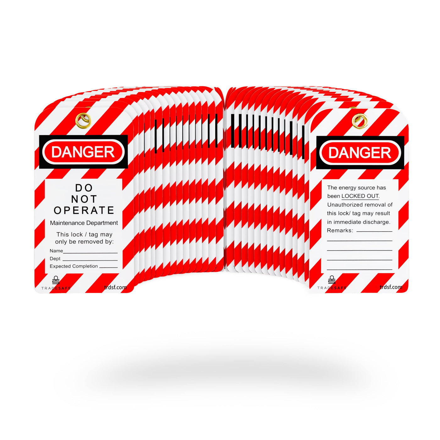 TRADESAFE Lockout Tagout Tags - 30 Pack - Premium 15 mil Vinyl Plastic w/Zip Ties | Danger Do Not Operate Tags - Compliance Safety Tags for Lockout Tag Out, Out of Service, Electrical Equipment Repair