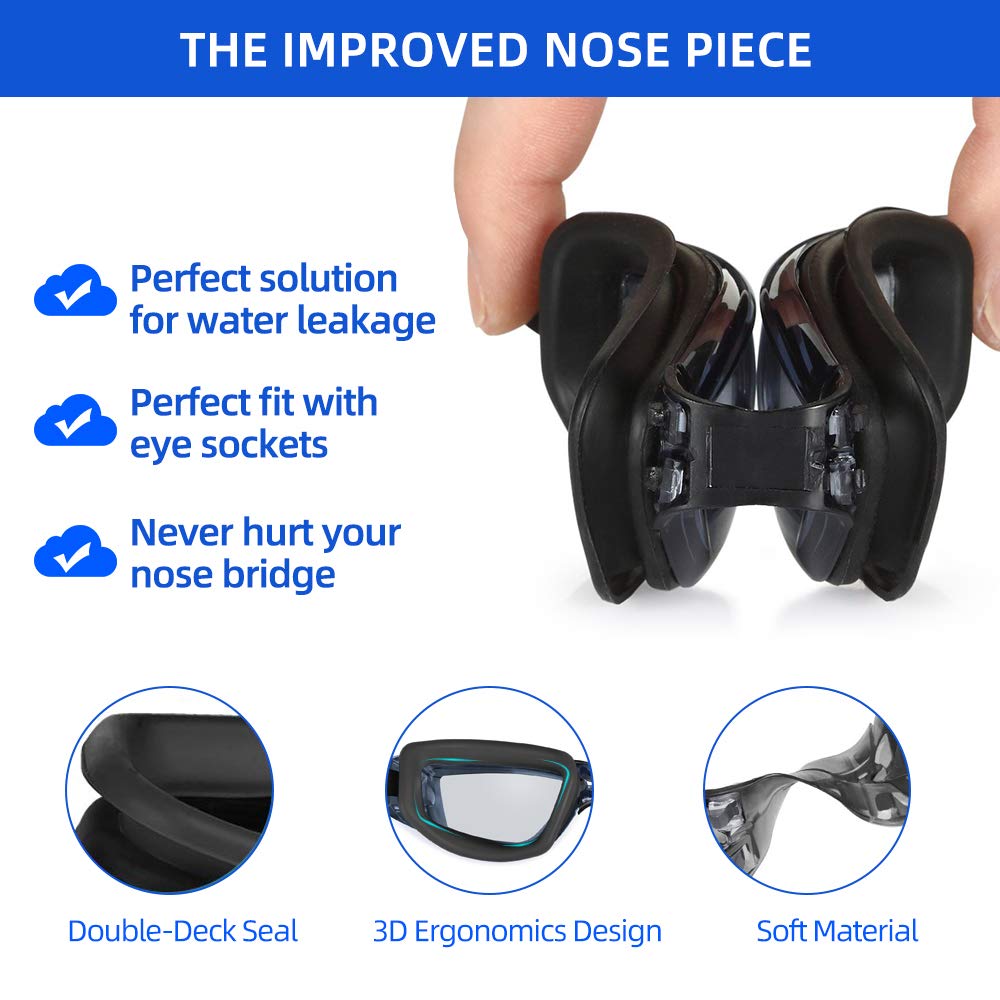 - NO LEAKING, FLEXIBLE & COMFORTABLE: Swim goggles have double-deck seal design and flexible silicone gasket frame construction to ensure a leak-proof seal. Give you an excellent swimming experience.