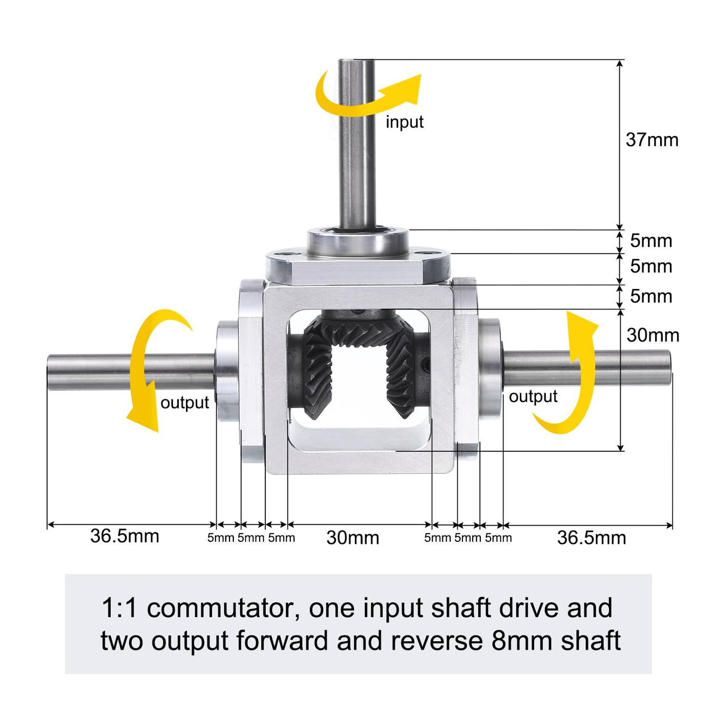 - Product Detail - 1 Module 20 Teeth 1:1 bevel gear reversing angle device 8mm shaft (one input and two output forward and reverse 8mm shaft).