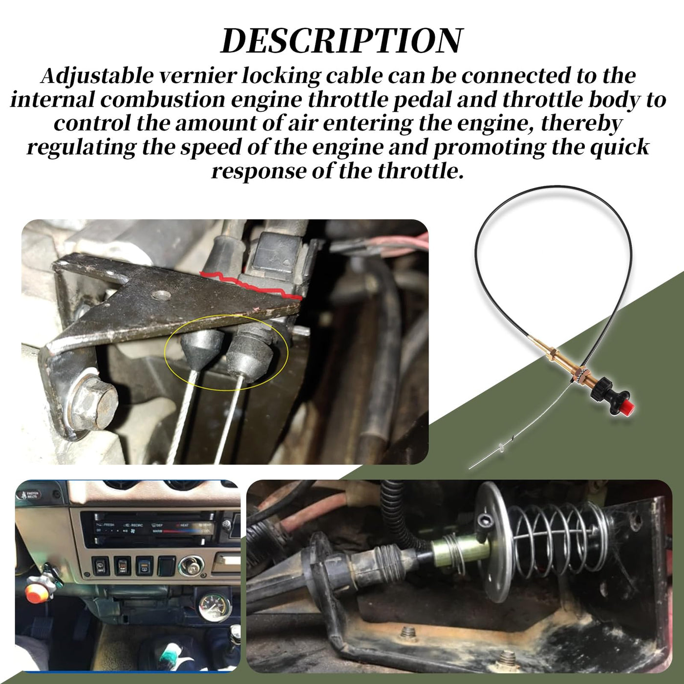 - [SIMPLE INSTALLATION]:6FT Heavy Duty Vernier Locking Throttle Cable is designed with a double ball lock that holds the cable in place accurately and quickly, and comes with a large, easy-to-hold knob that can be fine-tuned for precise setting to fix poor throttle response, jams or wear.The 4100 Series Heavy Duty Vernier Adjustable Locking Control Cable, reliable control for many PTO and dump applications. It's easy to use and install, and its detachable head makes adjustments fast and simple.