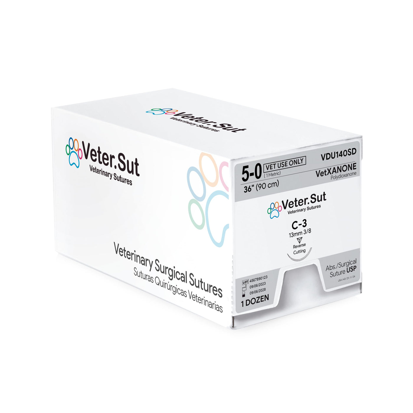 VeterSut VetXANONE Absorbable Polydioxanone Surgical Suture USP Size 5-0, (C-3) 3/8 13mm Reverse Cutting Needle, 36 Inches (90 cm), 12 Count, Veterinary Use