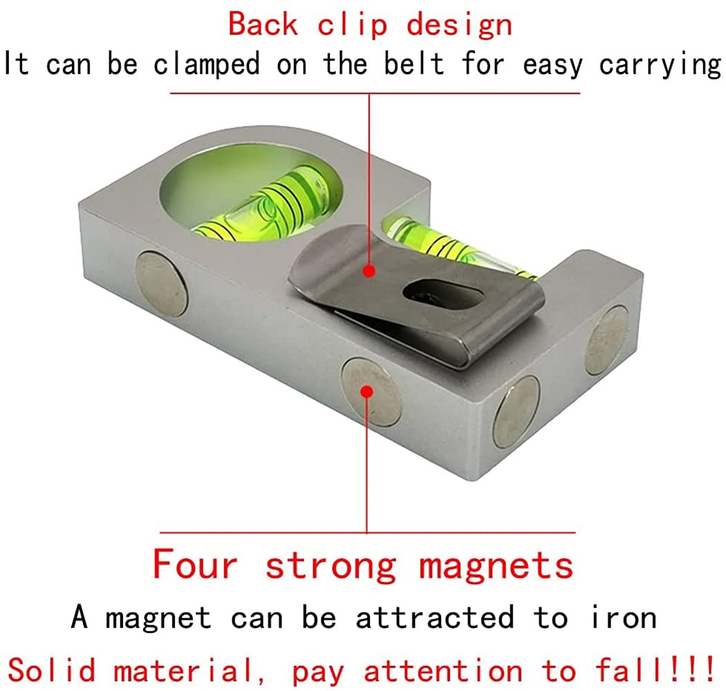 Color:Silver Green Solid aluminum integrated CNC machining accuracy is higher. Four magnets design, magnetic more powerful, can be absorbed in the iron. A mini level used to determine horizontal and vertical measurements. Double line design of horizontal bubble makes measurement more accurate High transparency horizontal bubble Size: 85 15 45mm Weight: 108G The back clip design can be clamped on the belt, which is convenient to carry. Aluminum solid material system, pay attention to fall!!!