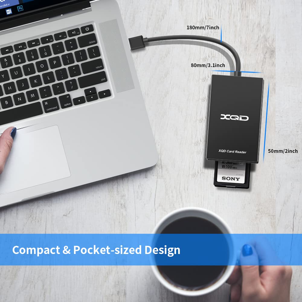 - Portable Design Easy to UseNo driver installation is required , just plug in to use, through the LED indicator of this XQD card reader, you can easily monitor the connection status. Portable & Compact design plug and play. It is made of high quality aluminum alloy shell, durable and scratch resistant. It's comfort and convenient for the indoors or out door use.