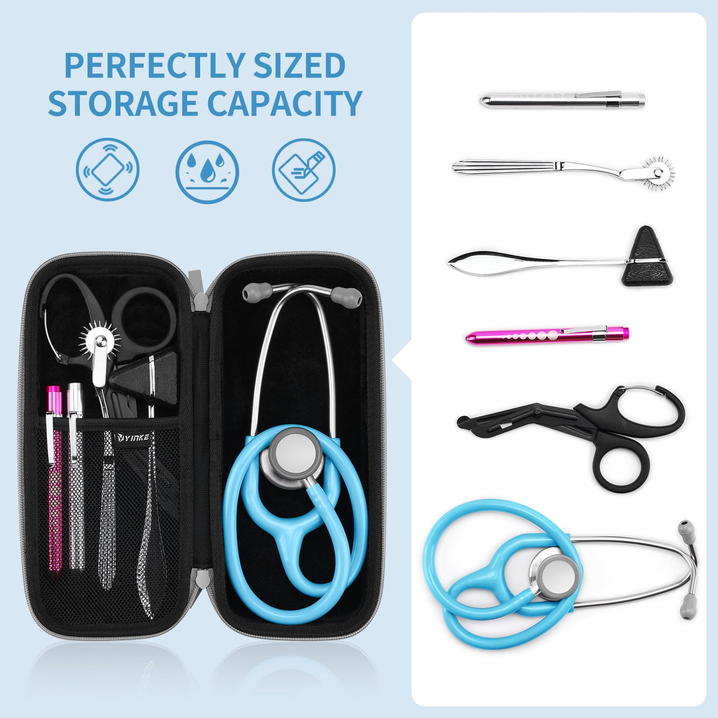 Yinke Stethoscope Case for 3M Littmann Classic III, Lightweight II S.E, MDF Acoustica Deluxe, Cardiology IV Stethoscopes -Extra Room Medical Scissors Reflex Hammer Penlight, Ideal Gift Nurse Doctor